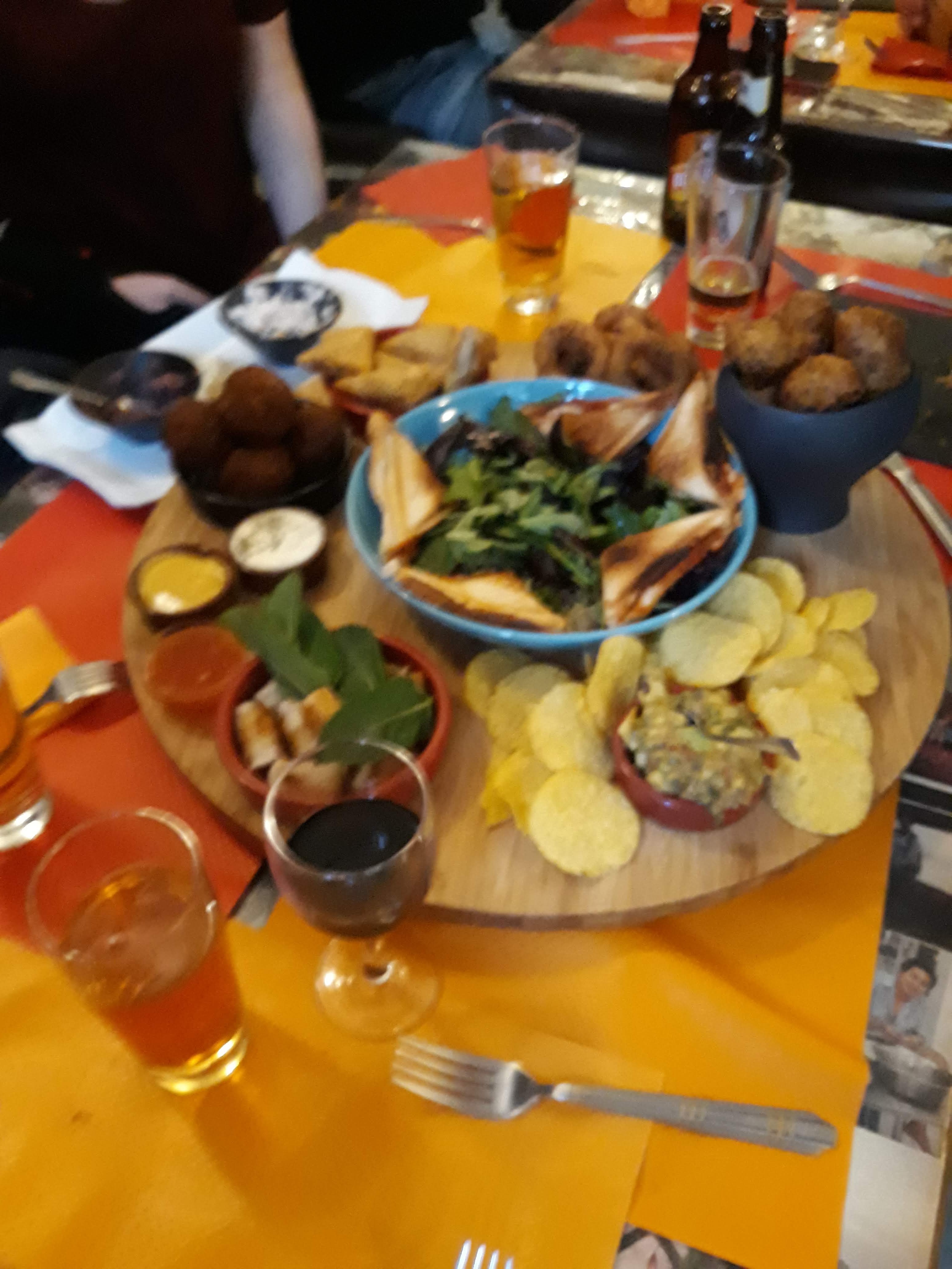Resto tapas du monde très sympa. Déco originale avec beaucoup de photos de voyage des proprios ambiance baba cool. Choix de tapas limités mais copieux et bons. Samoussas, falafels, nems, pt boudins noirs, fromage. Prix corrects.