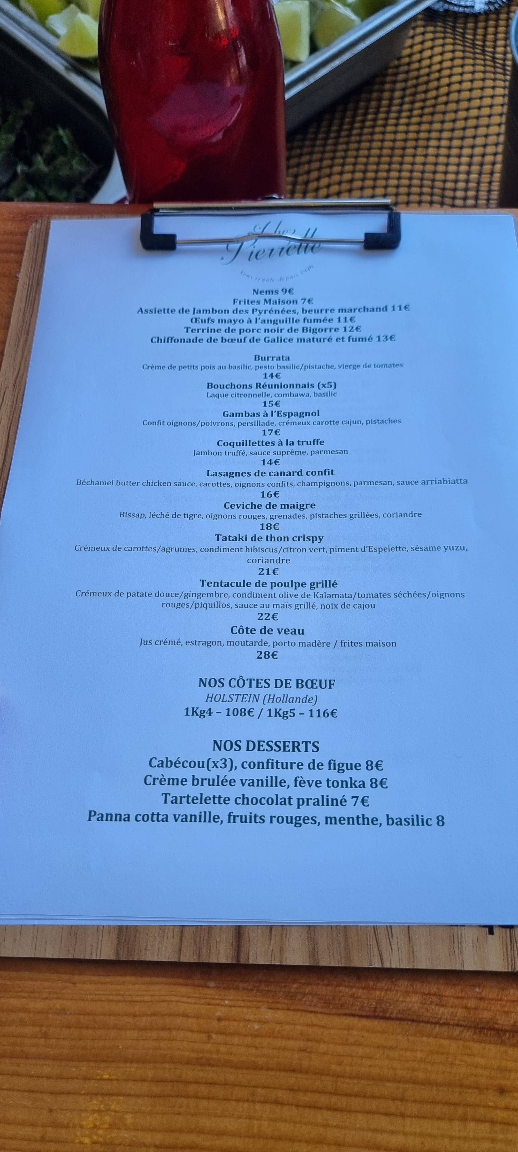 Super moment passer chez Pierrette Le cabillaud chorizo été excellent, tout comme le pavé de bœuf cuit à la perfection Dessert excellent également Nous reviendrons