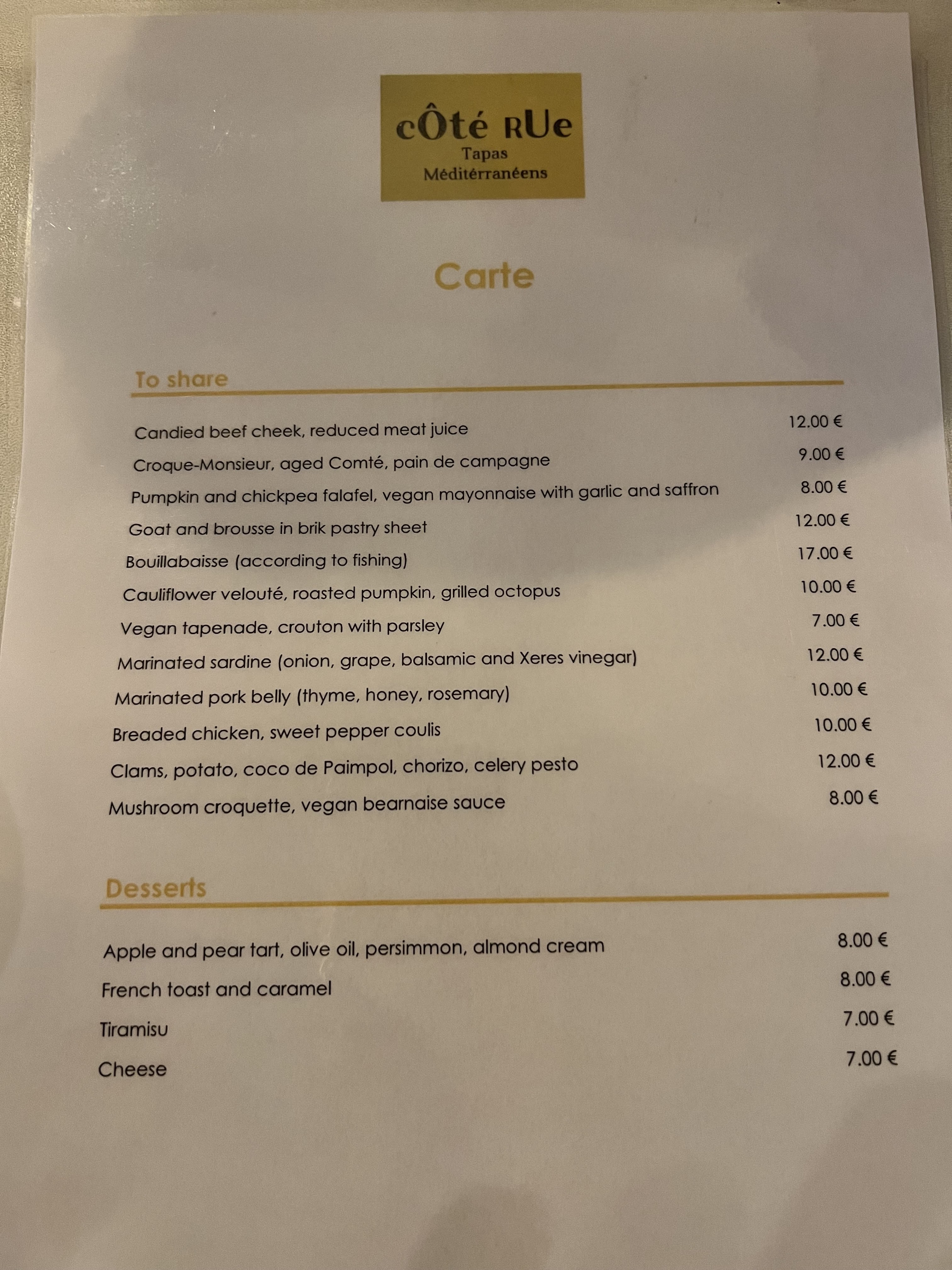 Une soirée magnifique, une ambiance douce, des tapas succulents et un service excellent ! Nous avons adoré notre moment à Côté Rue ! Merci à Sandy, une serveuse souriante et très gentille !
