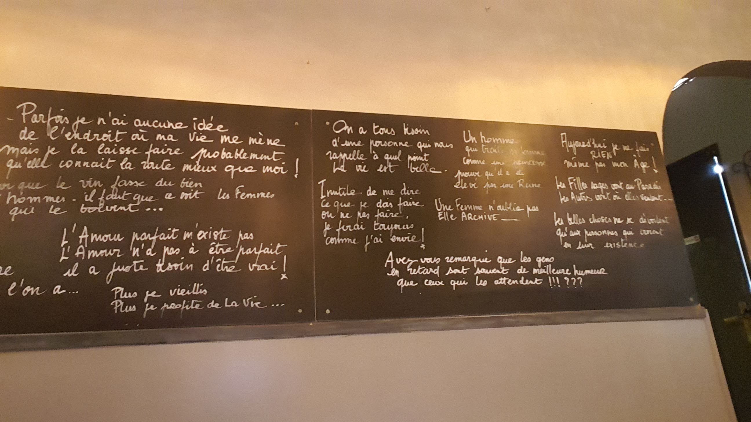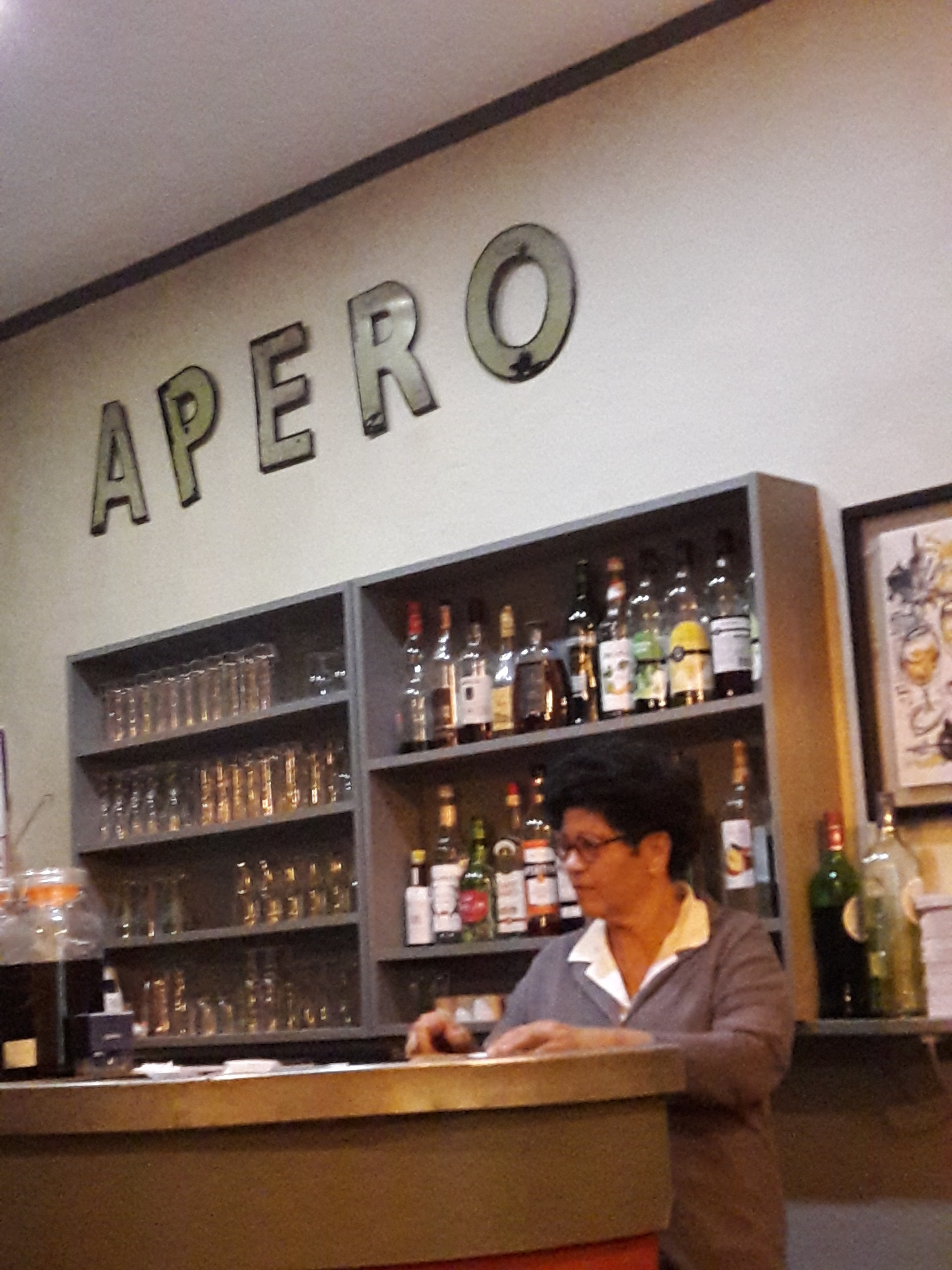 Lieu atypique, salle petite mais très conviviale, bon rapport qualité prix, cuissons parfaites (nous avons mangé une daube de poulpe et des supions à la provençale très tendres). Bon accueil et service rapide. Bref je recommande. Nous avons adoré les citations sur l'ardoise!