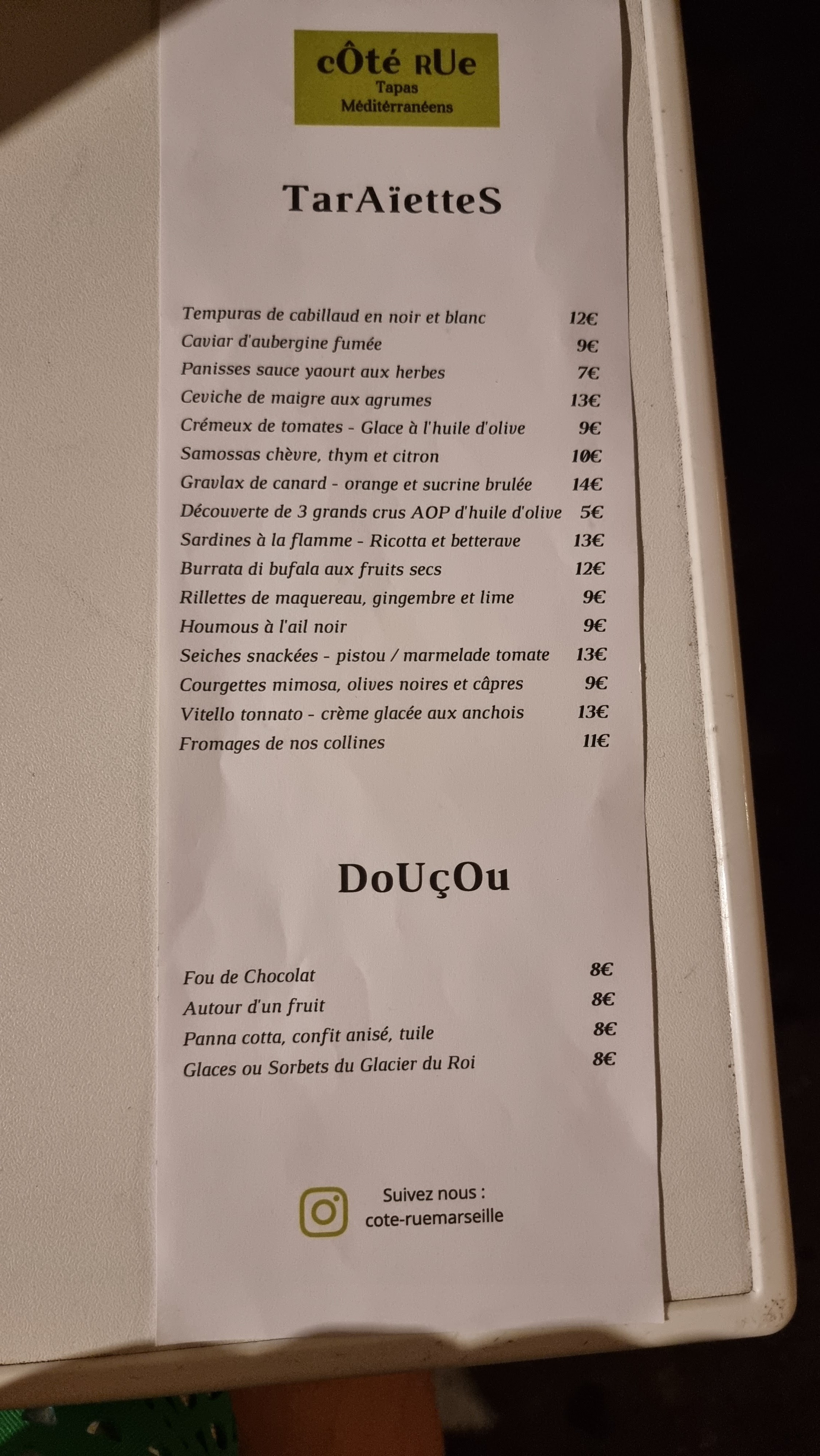Voici toutes les informations sur le Restaurant de tapas Cote Rue qui ce trouve au 14 Rue Saint-Pons, 13002 Marseille (13). Sur cette fiche vous trouverez les photos, l'adresse, les horaires d'ouverture, le numero de téléphone et les avis clients.Vous pouvez églement rédiger un avis si vous le souhaitez en bas de page.