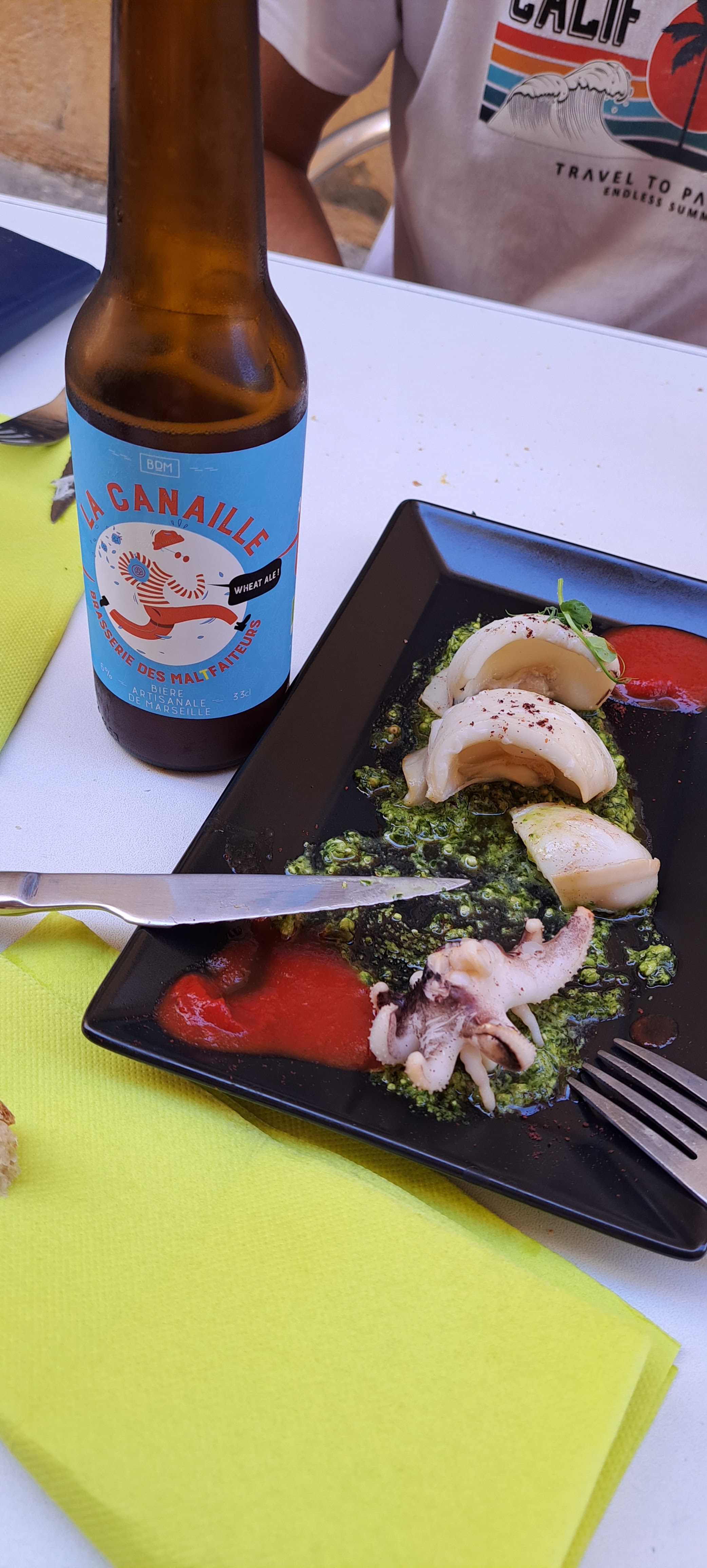 Pas de chichi, ça vaut le détour de cette petite rue, comme sur la terrasse de vieux copains. Voilà pour l'ambiance ! Maintenant, l'assiette : A PARTAGER ! c'est le concept qui décuple le plaisir de la dégustation. Nous étions 3, et nous avons partager un Généreux bol de bouillabaisse légère, gourmande et citronnée, une salade de poulpe à l'ail très savoureuse, une pissaladière très généreuse et succulente et une burrata sur son lit de tomates exquises, juteuses et son Assaisonnement pesto à tomber. Et POUR FINIR une brioche perdue et sa glace fondante ... mais à ne pas louper la foccatia abricot et sirop de romarin... UNE TUERIE !!! je précise que nous ne connaissions pas ce petit resto et nous n'avons aucune autre prétention que vous partager notre plaisir de cette très chaleureuse expérience culinaire, simple, raffinée, gourmandes... bref ça fait du bien aux papilles et au moral. Bon appétit !