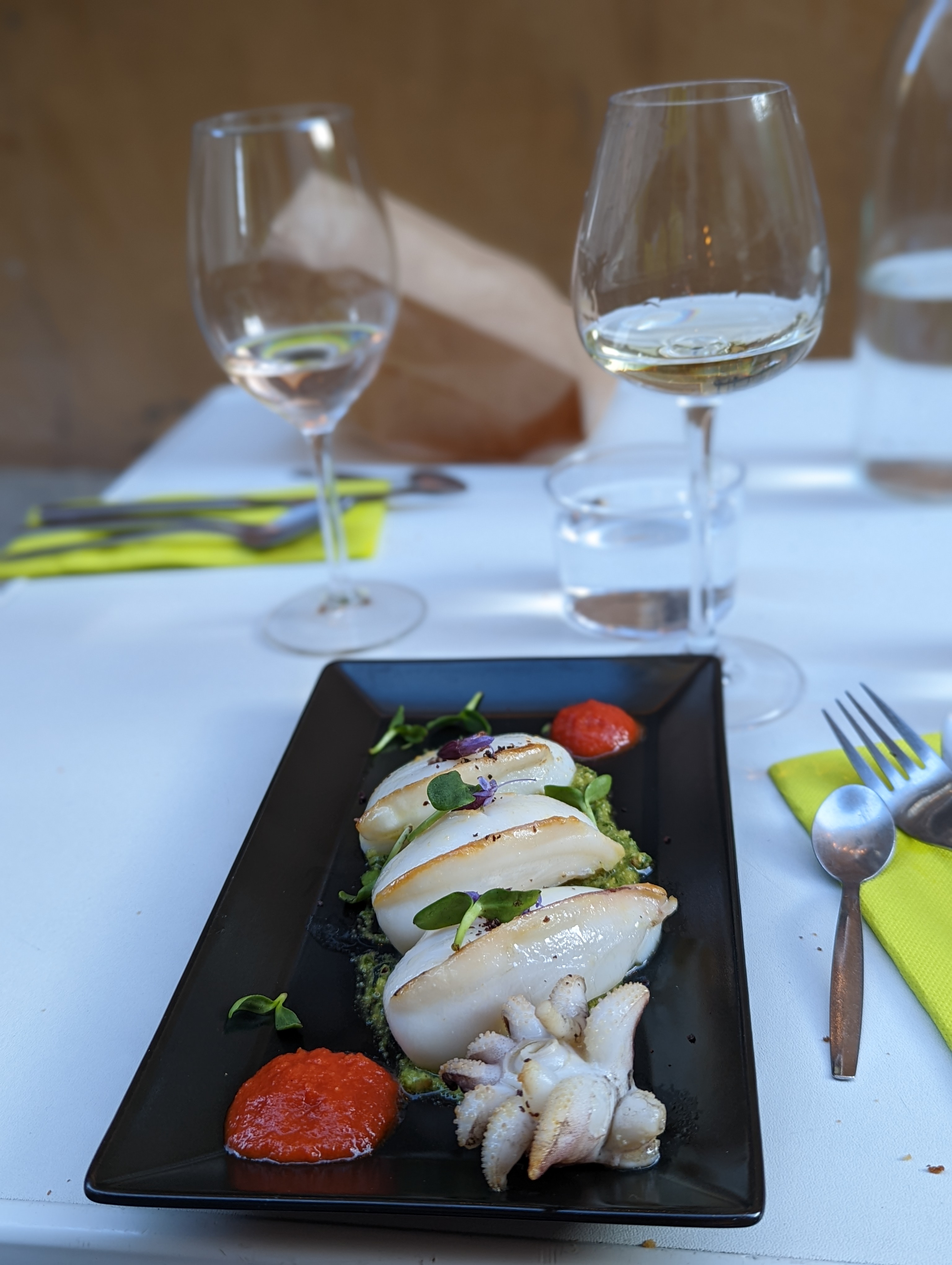 De délicieux tapas de produits frais, du bon vin, un service très sympathique, le tout dans un cadre chaleureux. Nous avons passé un très bon moment, dommage qu'il y ai ce couvre feu, on y aurait bien passé quelques heures de plus !