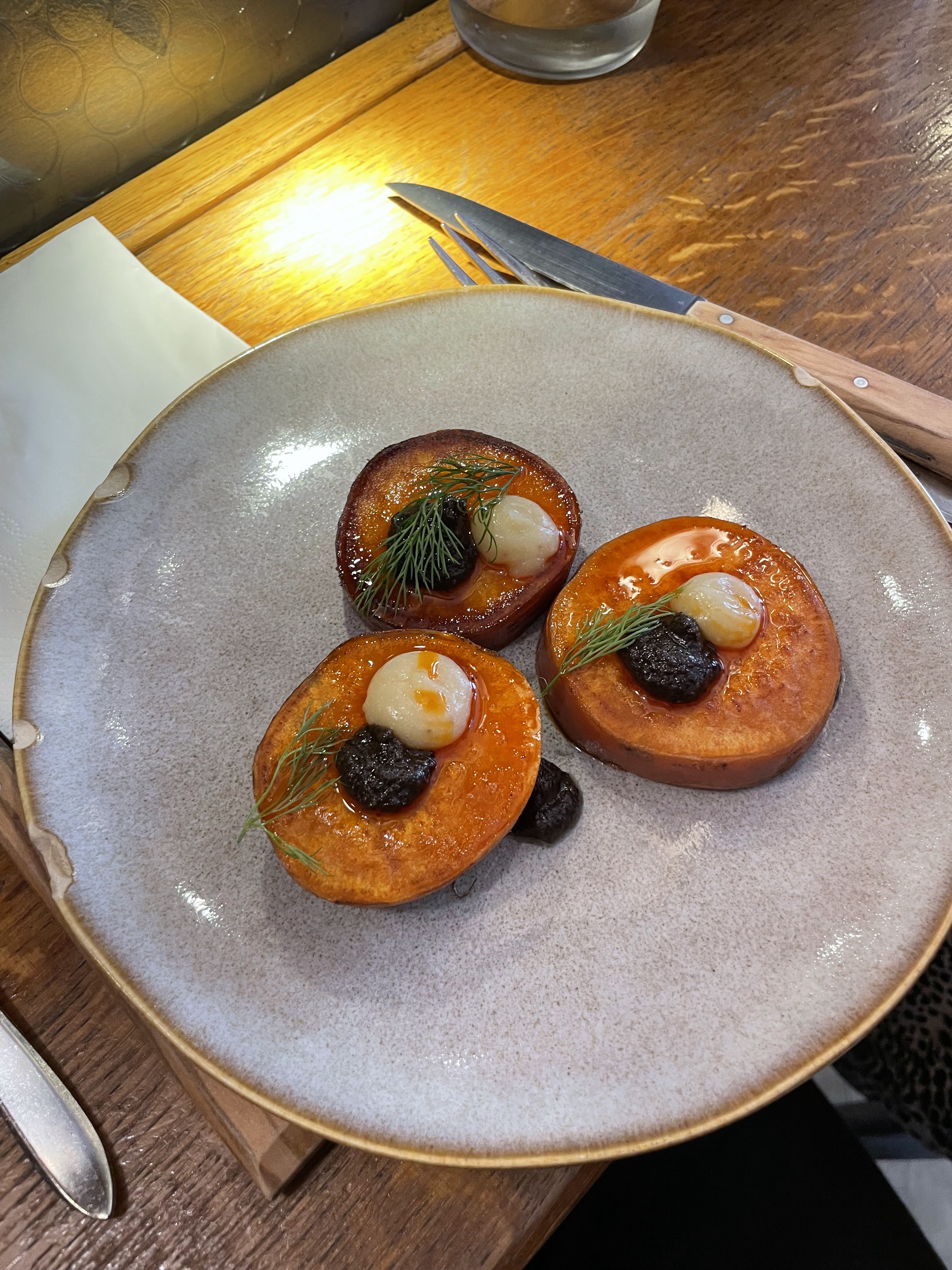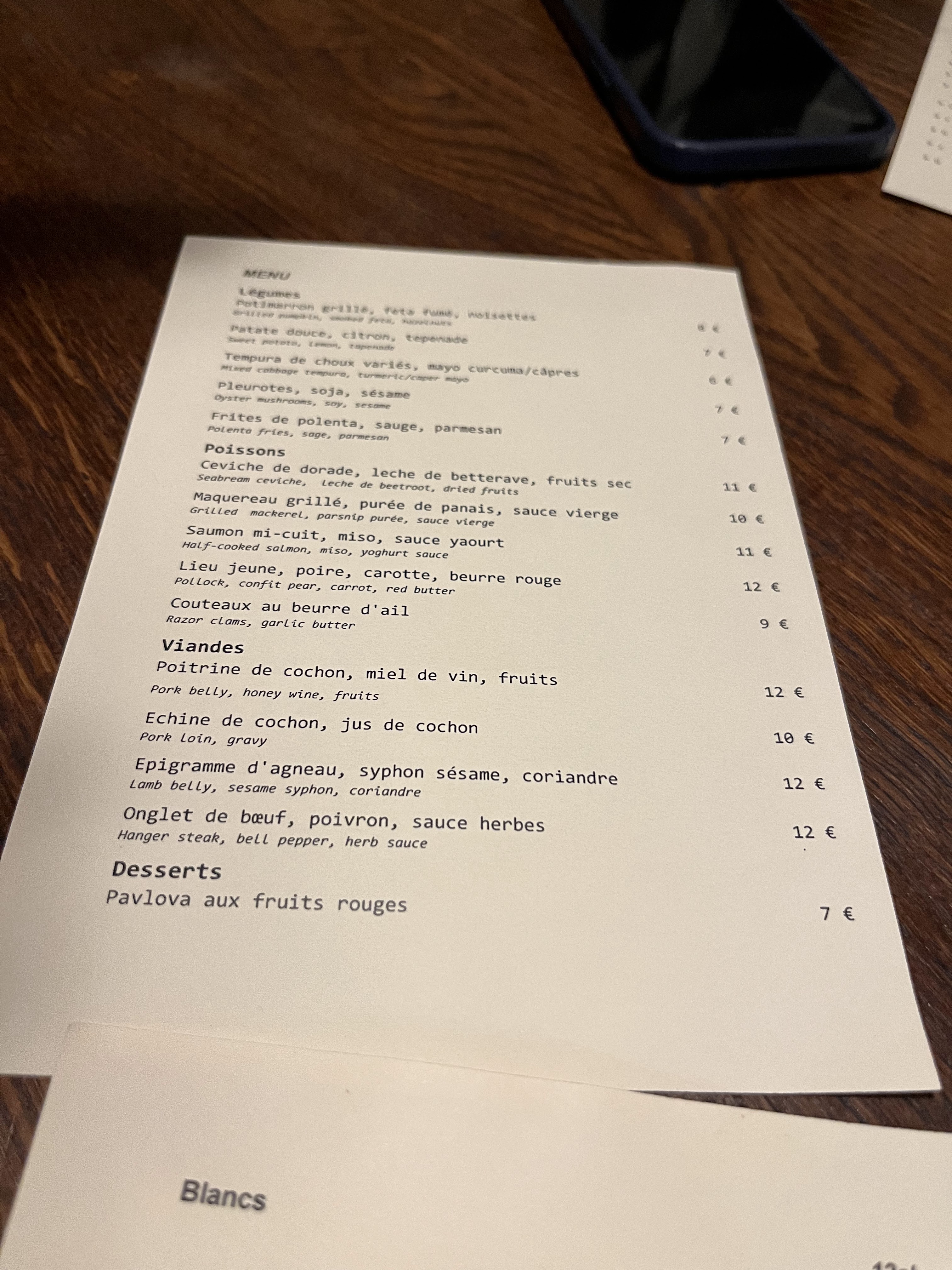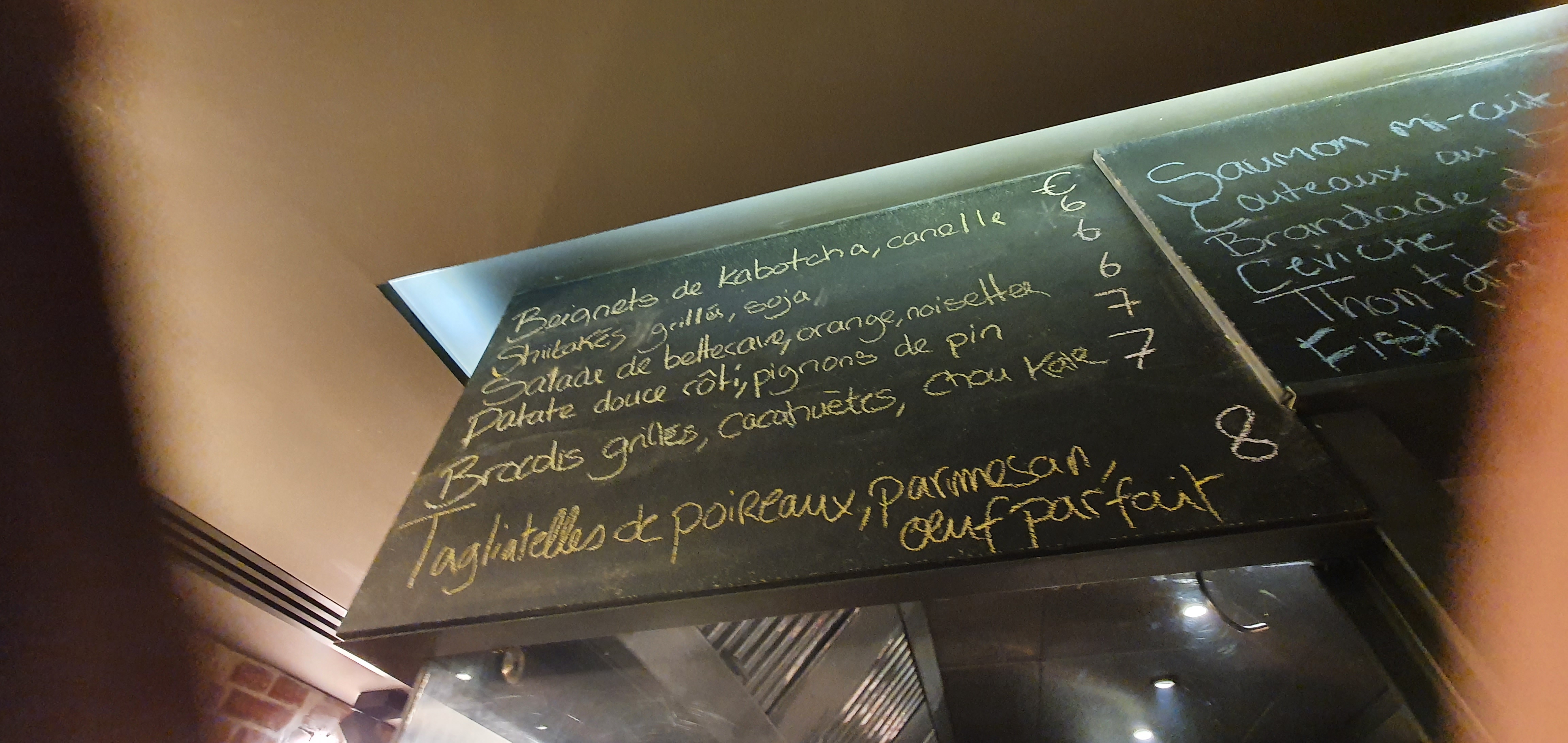 Rien d’exceptionnel ! Les portions sont minuscules pour le prix et les goûts ne sont pas très prononcés ! Les pleurotes étaient très bonnes mais les saint Jacques, le poireau et le cochon n’avaient pas trop de saveur ! Assez déçu malheureusement, il y a de biens meilleures adresses de petits plats à partager à Paris !