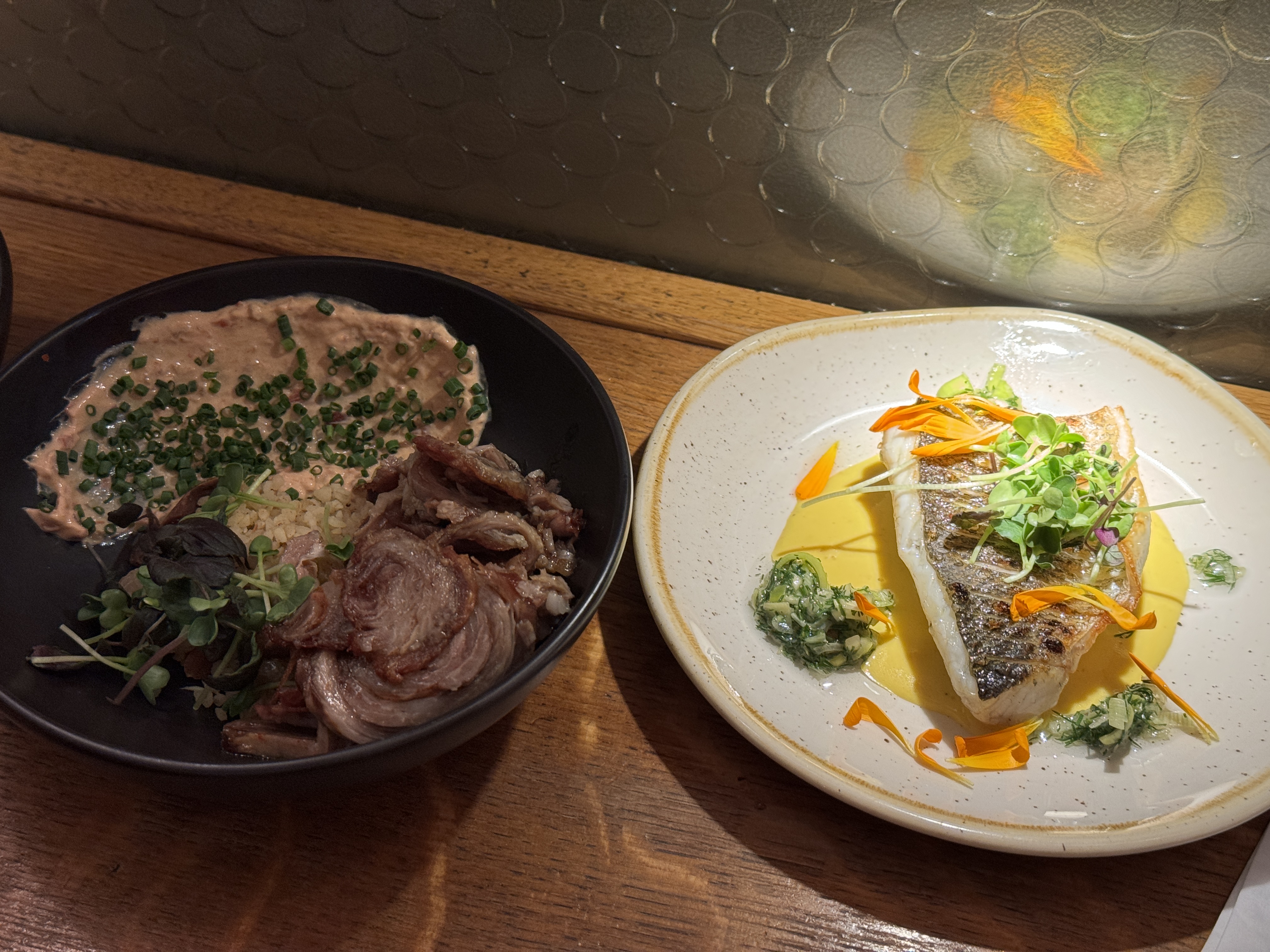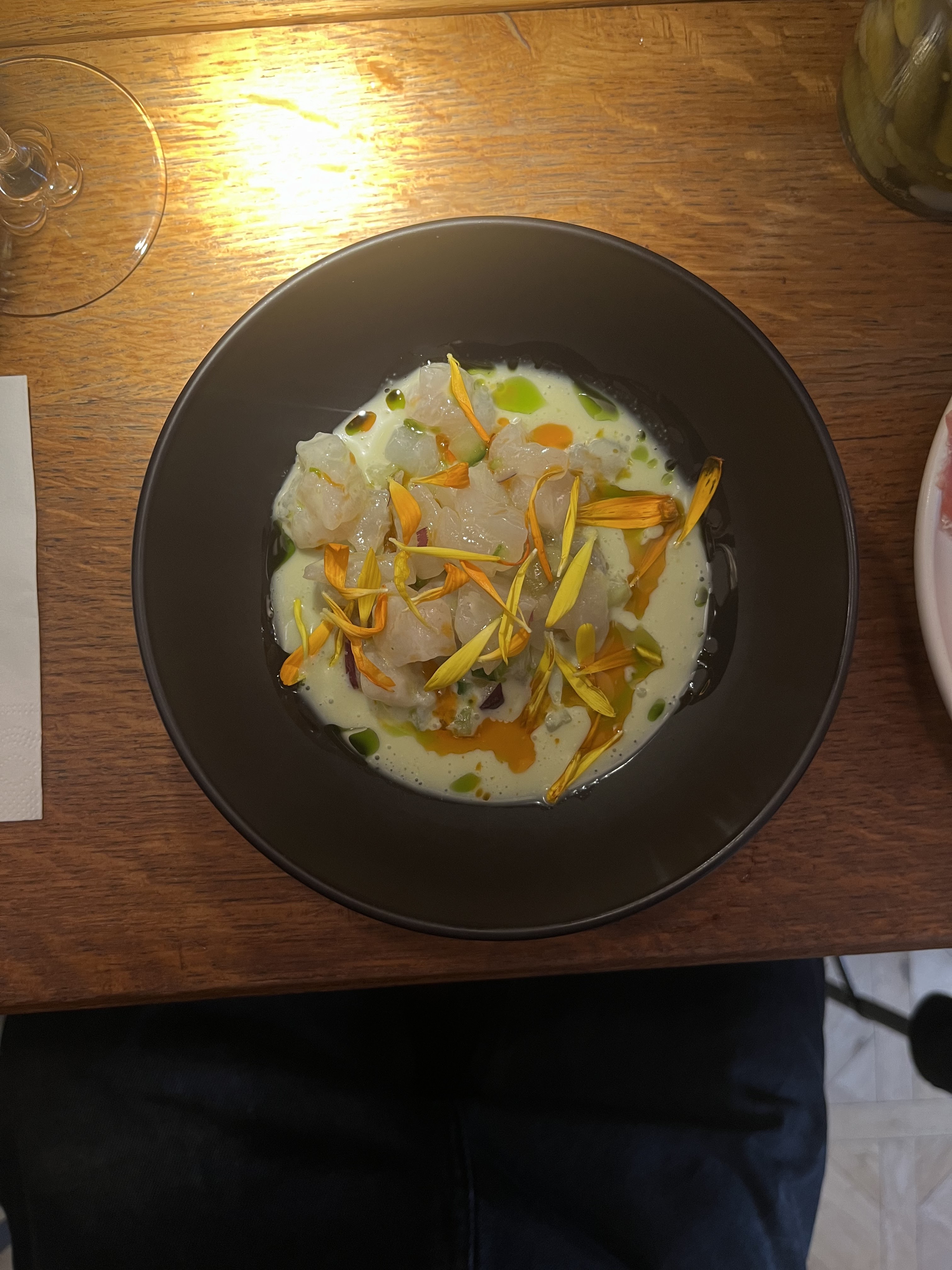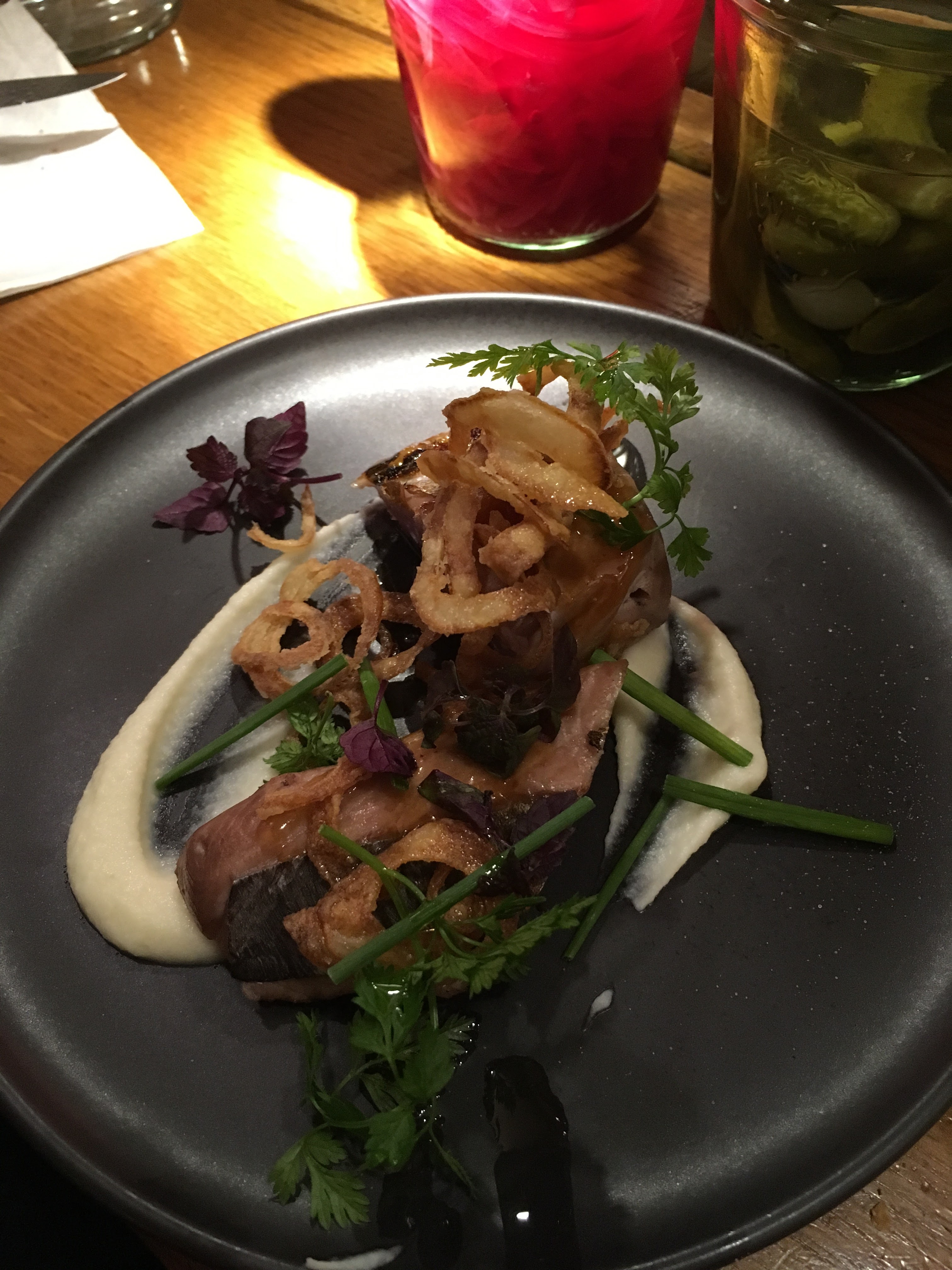 Rien d’exceptionnel ! Les portions sont minuscules pour le prix et les goûts ne sont pas très prononcés ! Les pleurotes étaient très bonnes mais les saint Jacques, le poireau et le cochon n’avaient pas trop de saveur ! Assez déçu malheureusement, il y a de biens meilleures adresses de petits plats à partager à Paris !