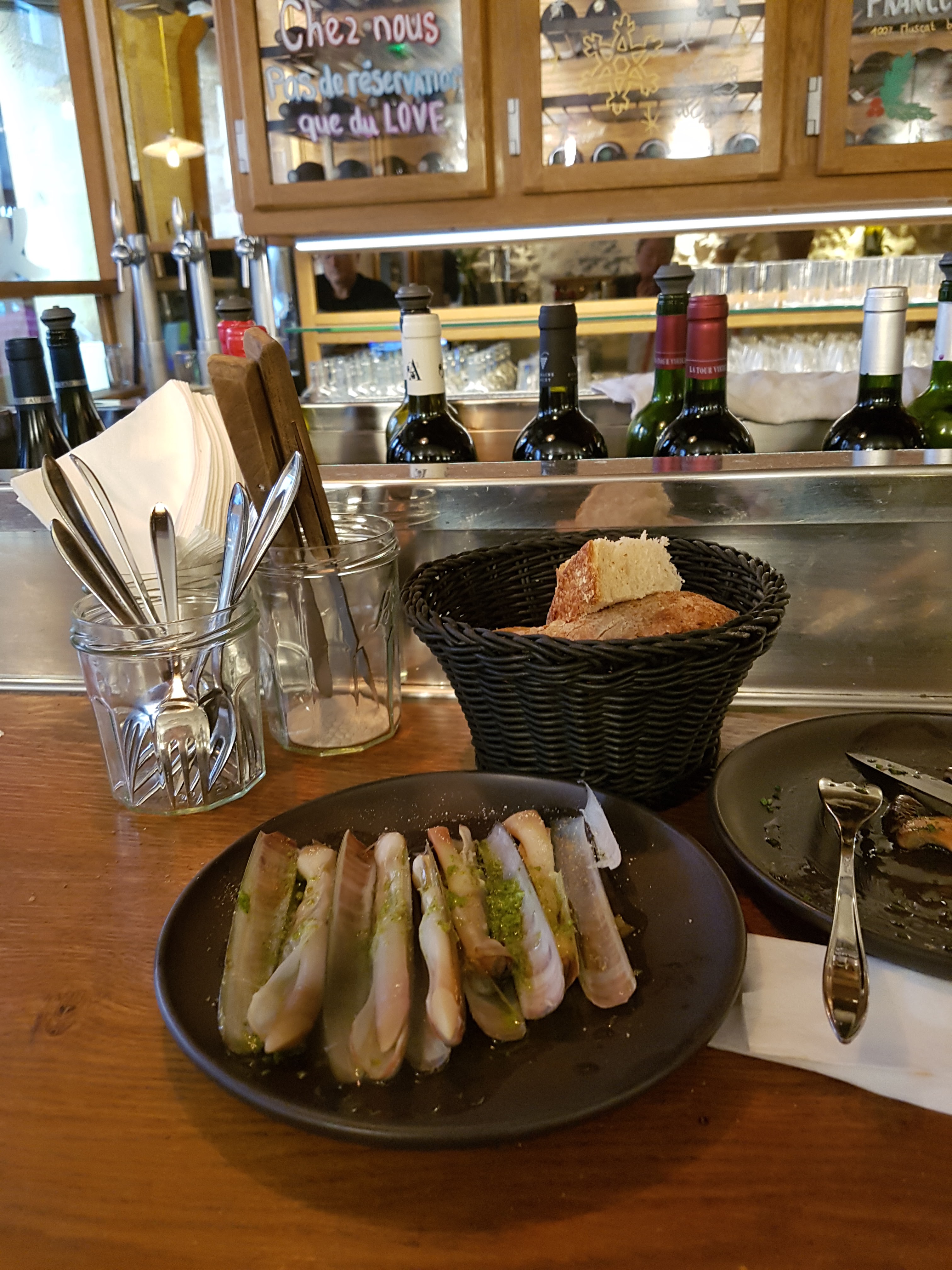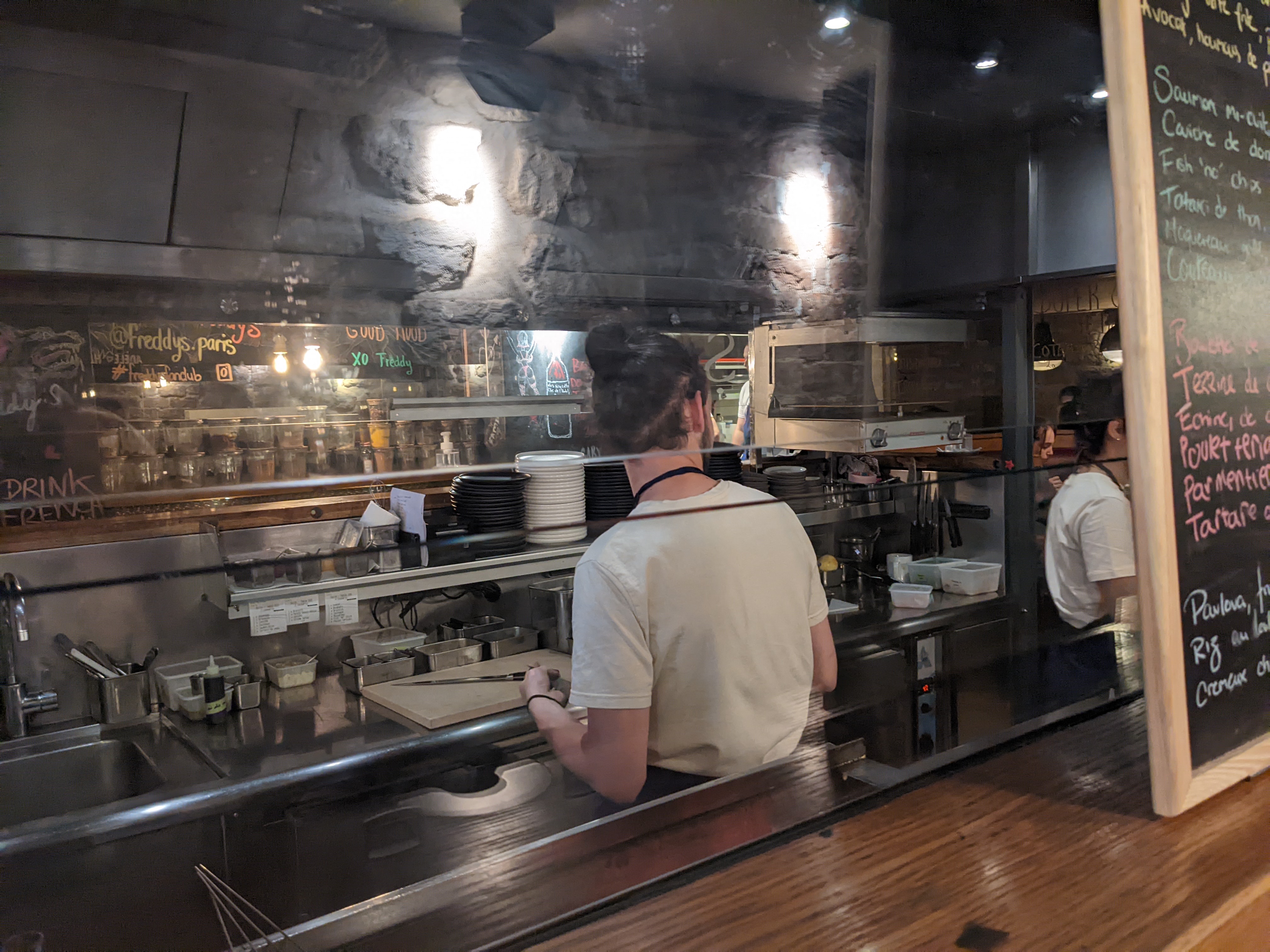 Pas très large ce Freddy, mais très sympa. Cuisine ouverte au milieu de la salle donne une atmosphère bien particulière. Nous avons pris les couteaux, très bon. Les asperges un peu acides cependant. Chouette endroit