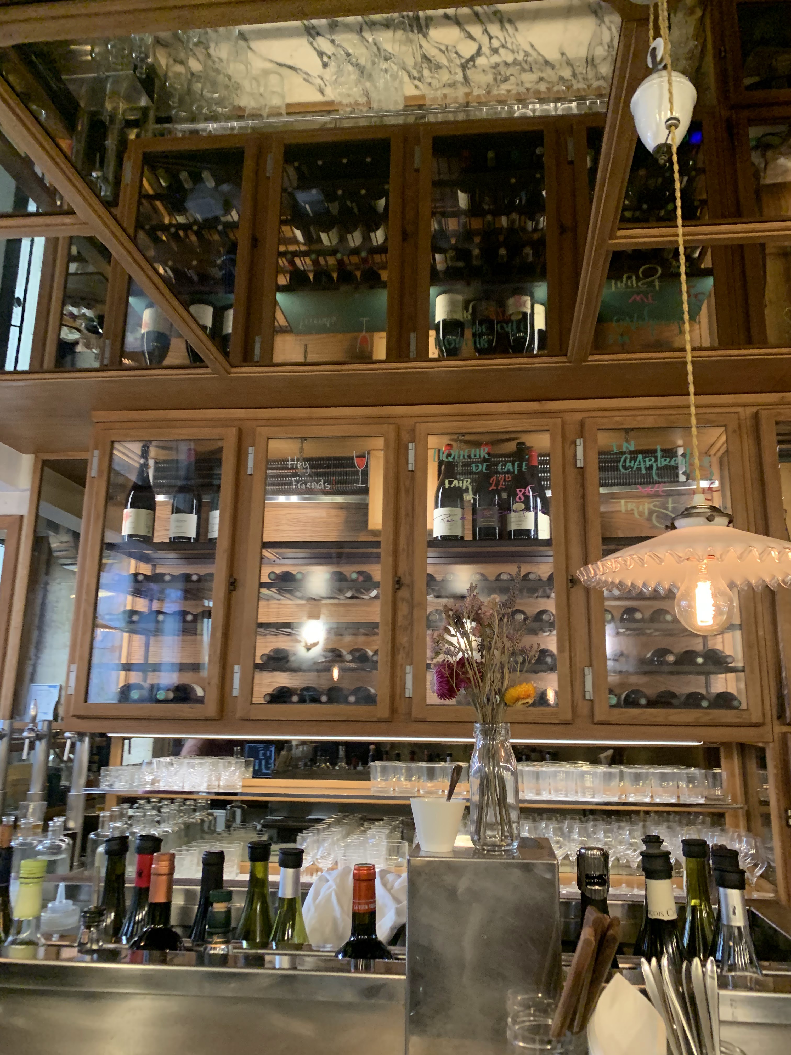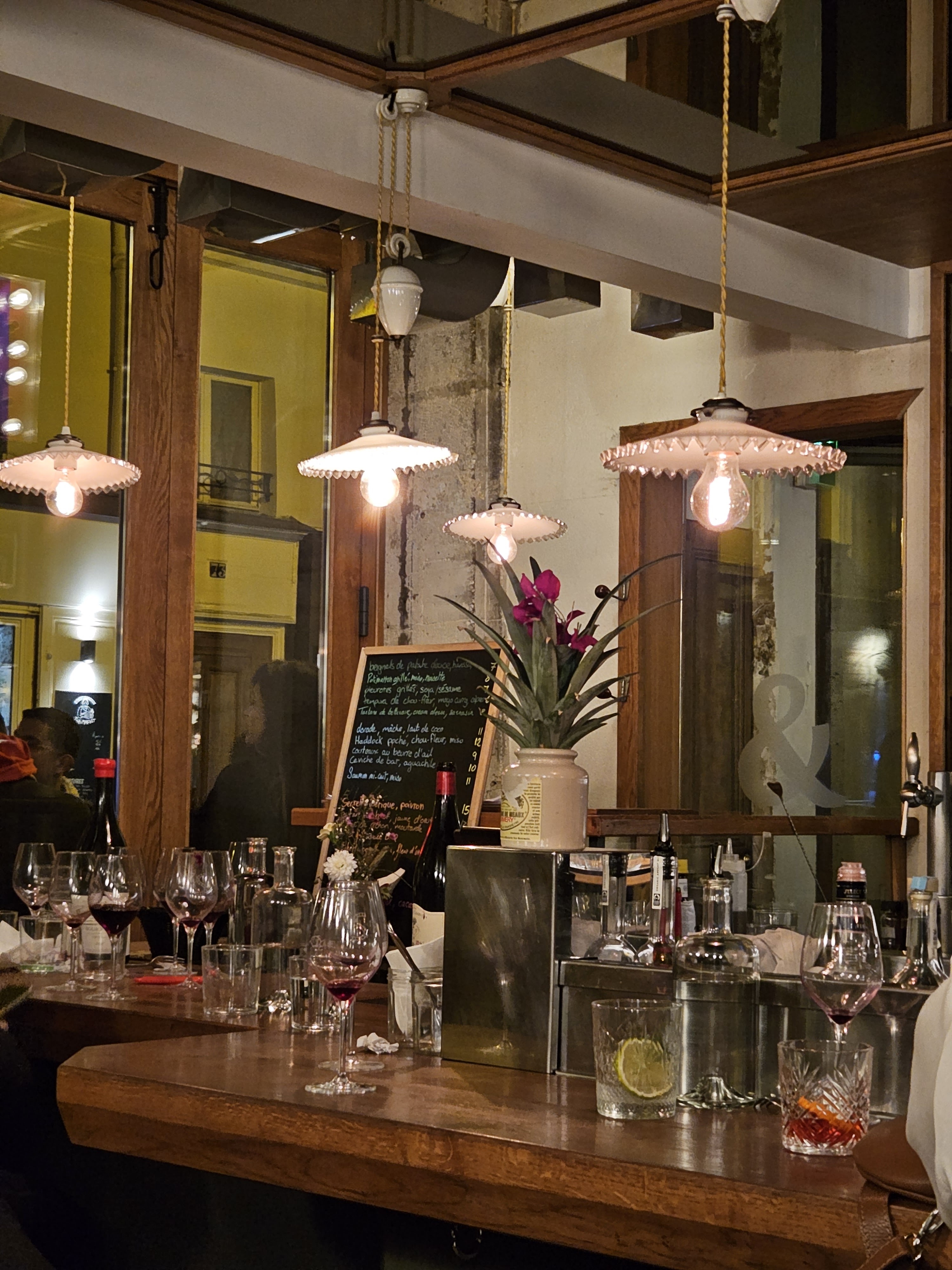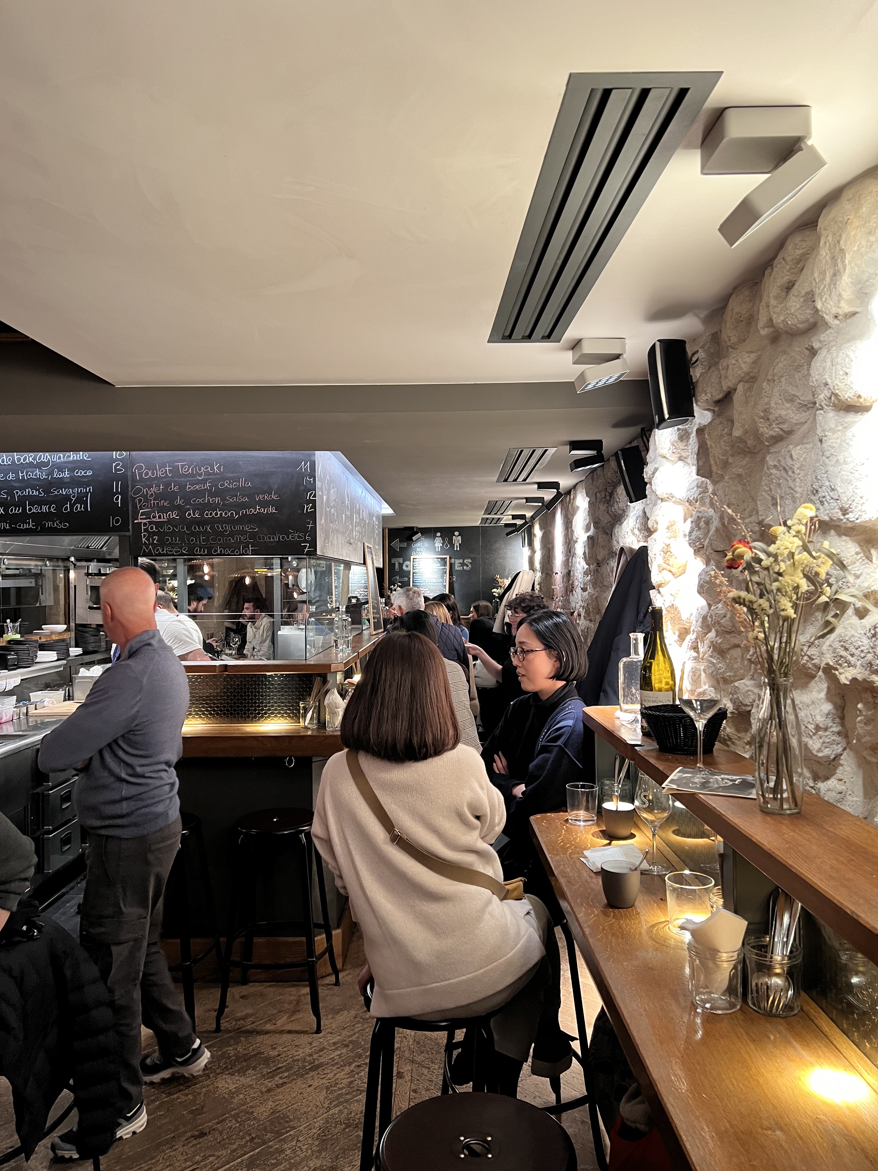 Recommandé par un barman travaillant à coté. Le service est top, la qualité des plats et des vins pour le prix et le quartier est top. Manque un peu d’espace si on on est grand mais très vite oubli par l’ambiance.
