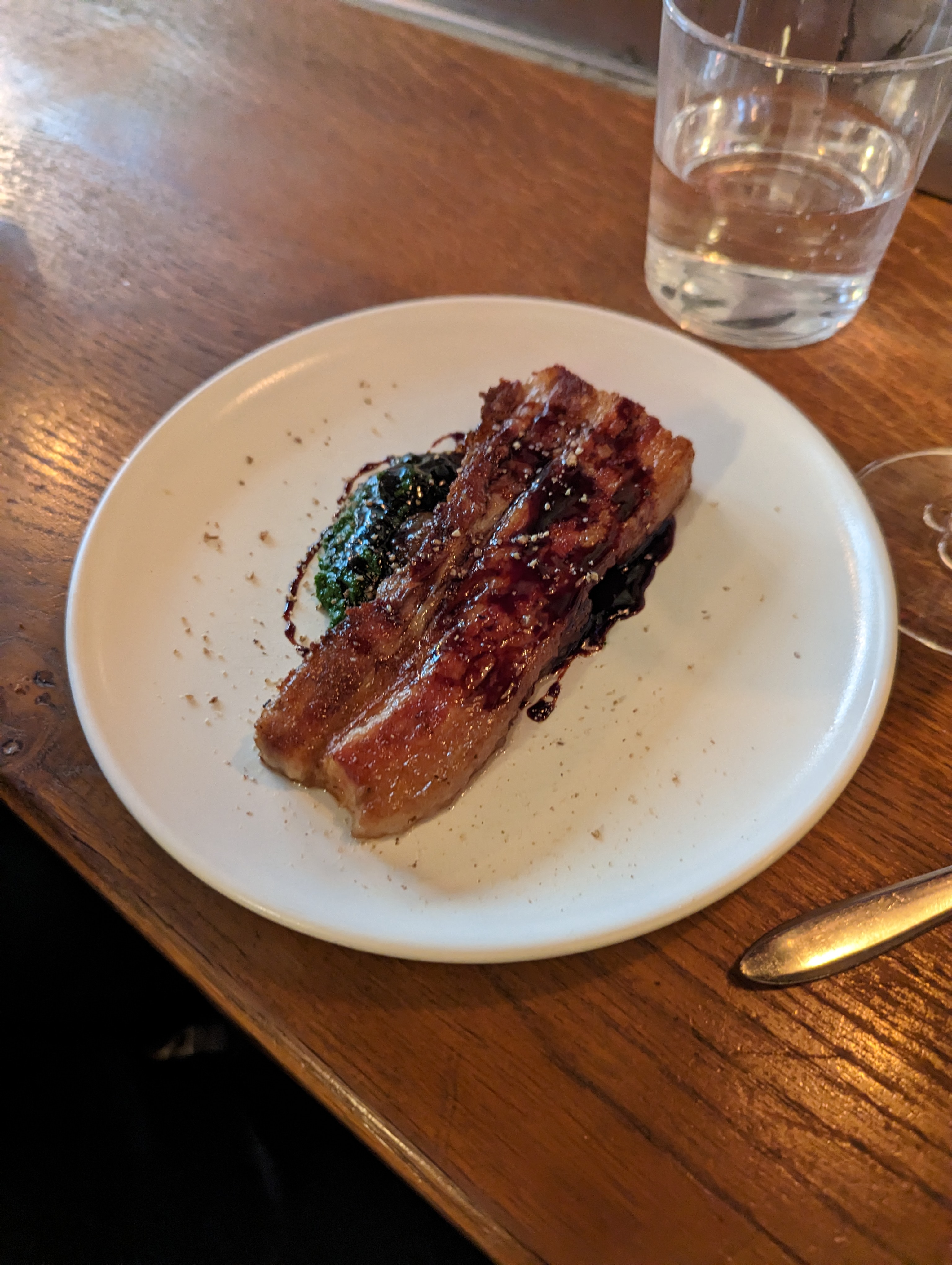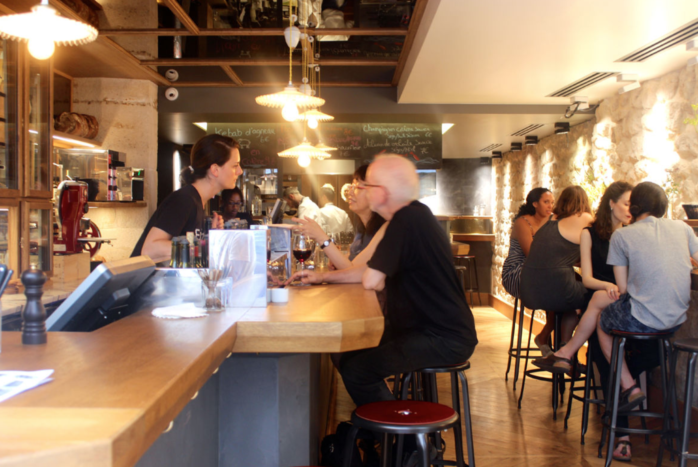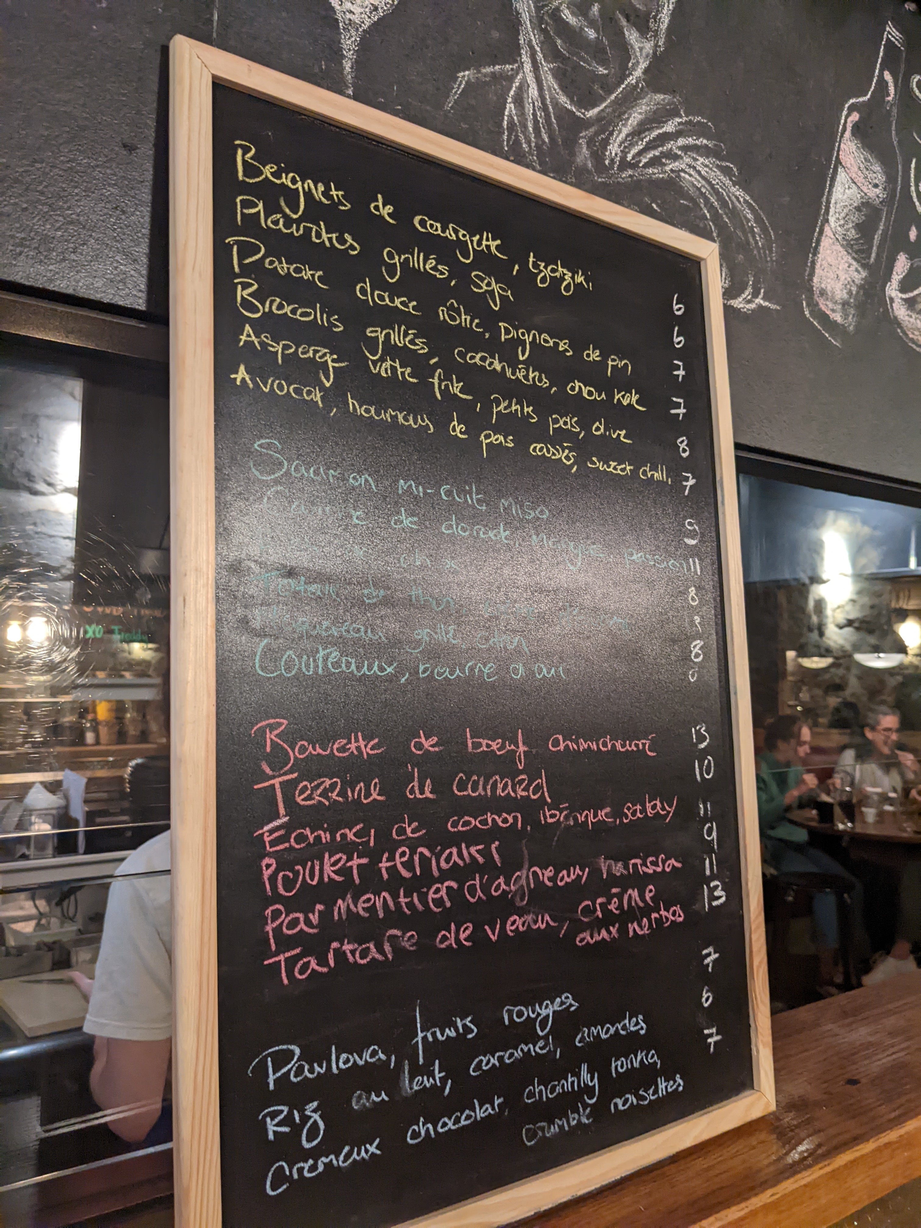 Recommandé par un barman travaillant à coté. Le service est top, la qualité des plats et des vins pour le prix et le quartier est top. Manque un peu d’espace si on on est grand mais très vite oubli par l’ambiance.