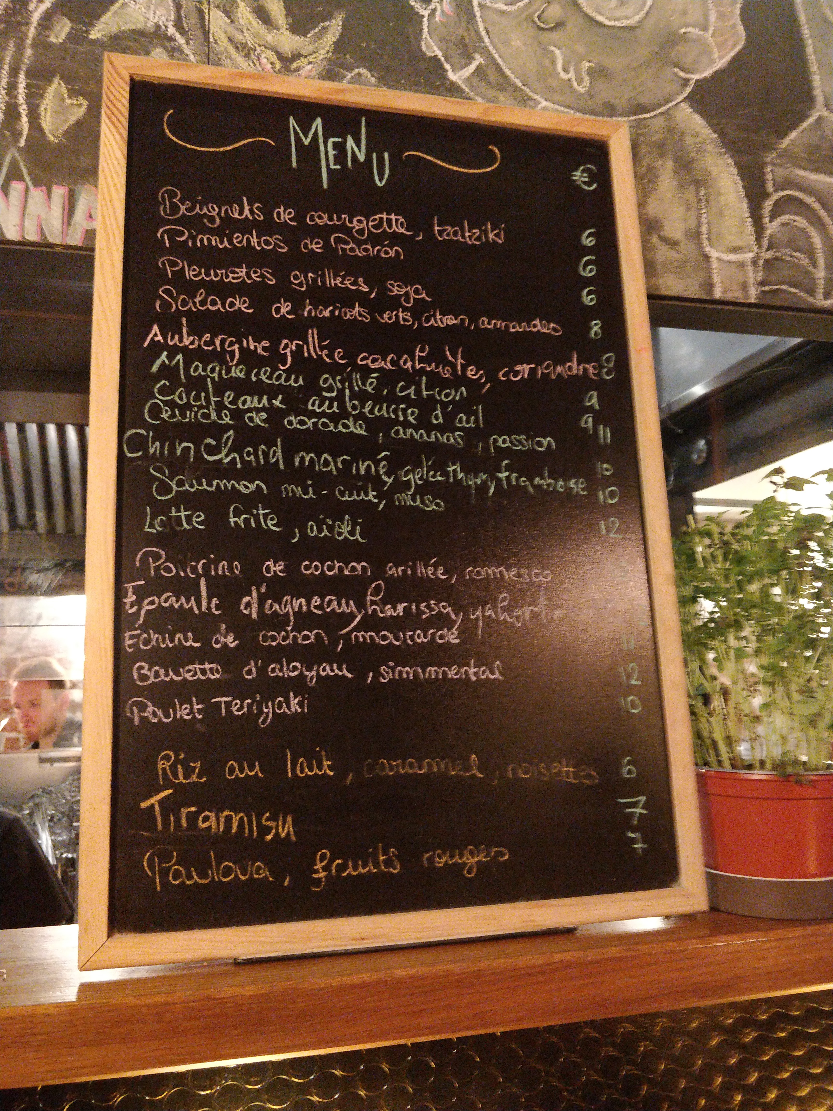 Un délice ! Des tapas délicieuses et un bon choix de vin pour accompagner. Un cuisine fusion, qui ajoute des petites touches asiatiques et nord américaine à une base française, c'est toujours un régal. Niveau budget, compter 30€-35€ environ par personne pour un dîner avec verre de vin.
