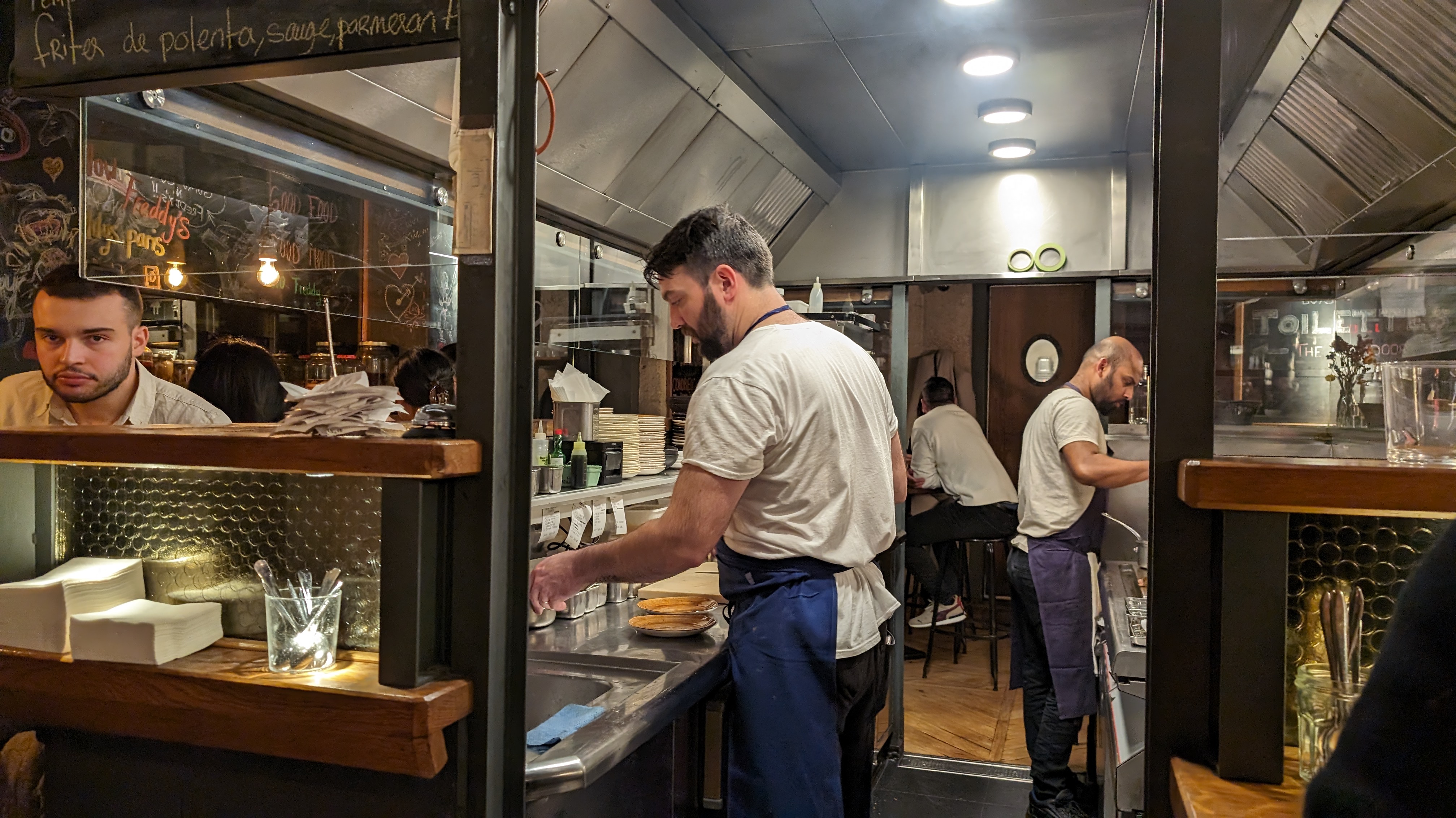 Superb chefs tres mignons aussi 🫶 les plats sont hyper savoureux et arrivent très vite, tout avec un playlist star ⭐️ - un de restau préféré à Paris!