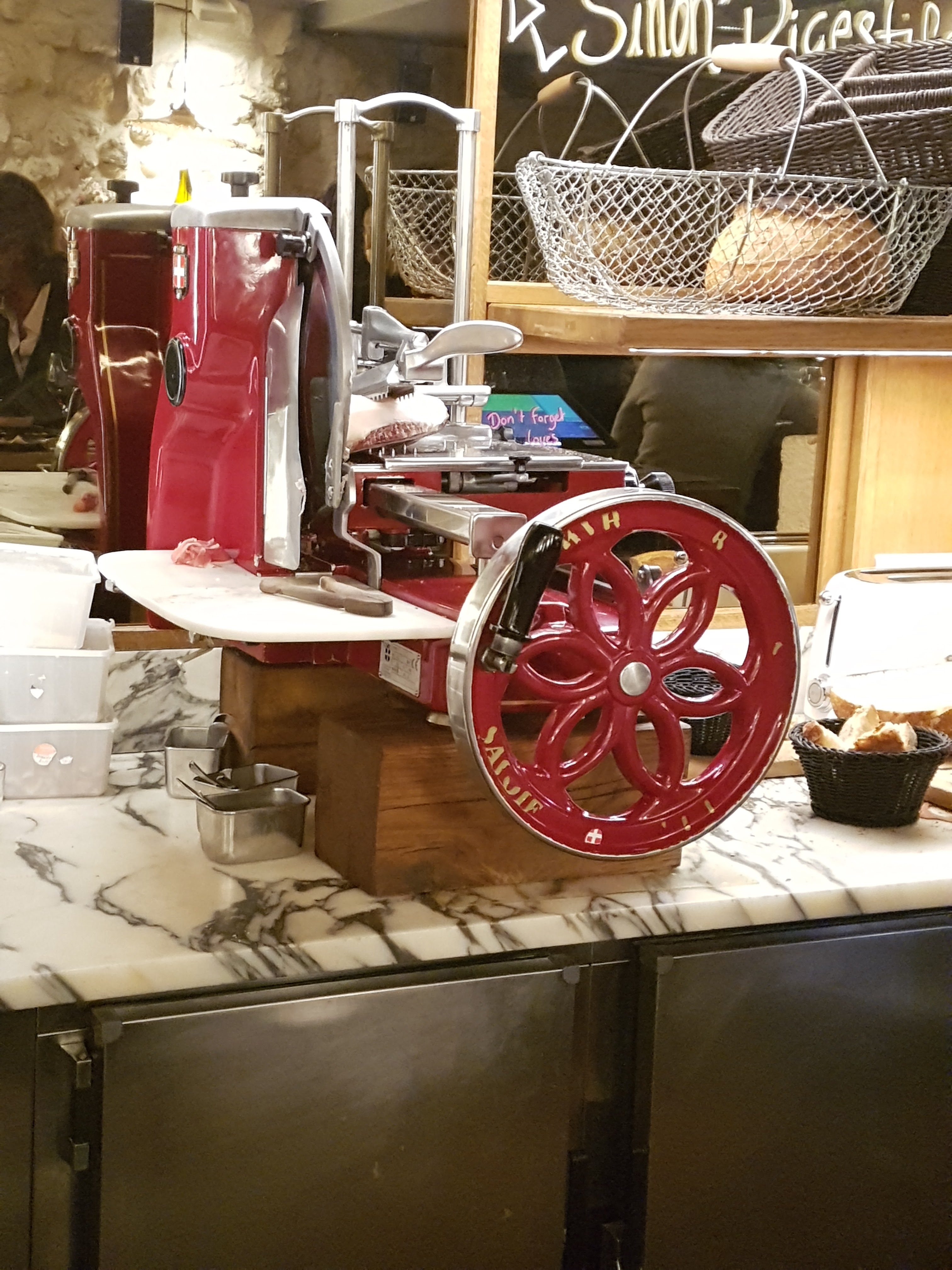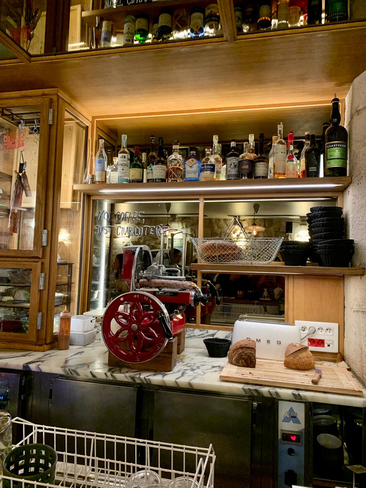 Cette établissement, n est rien d autre qu' un bar à tapas pour touriste. La qualité des produits est au rdv. Les tarifs sont trop élevés, pour des quantités insuffisantes. Je dis stop stop au barman de vouloir faire surconsommer les clients avec des verres de vin trop chère et pousser à La consommation sur des assiettes de charcuterie ou de fromage rikiki. C est indigne de la gourmandise française. Il n y a que des étrangers qui peuvent consommer dans ce bar à tapas sans se dire j ai encore faim en sortant ou alors ou est mon billet de 50 euros que j ai laissé sur le comptoir. Porquoi pas un droit de réponse de la direction de cette établissement. Merci