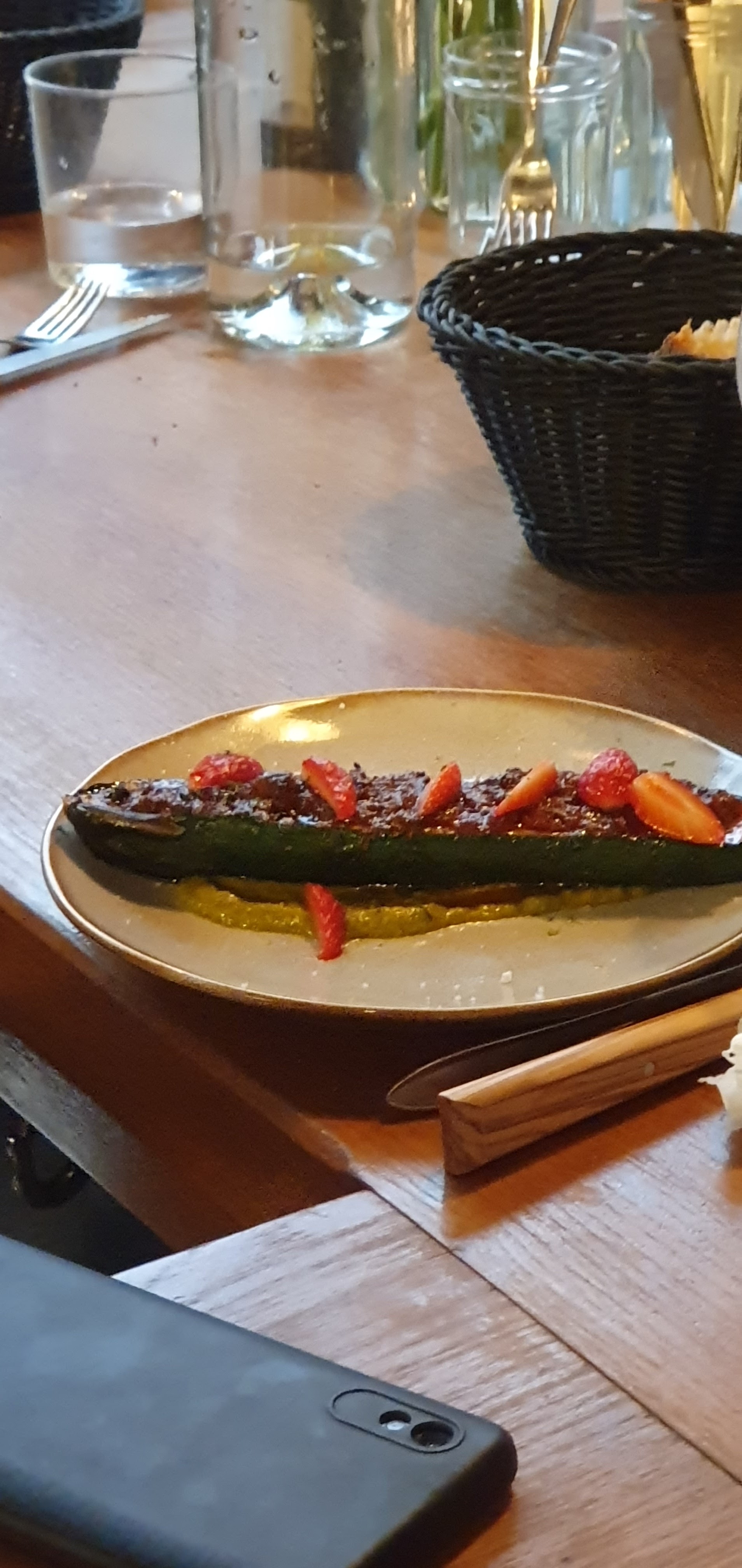 Pour le coup j’y avais très bien mangé, sauf que ce n’était indiqué nulle part que c’était un resto de (tapas) si je puis dire puisqu’il y avait même un menu comme dans un restaurant normal, sauf que en l’occurrence les quantités, et la taille des assiettes étaient bien moindre ! C’est limite des assiettes à dessert (taille) ça paraît copieux, mais ça ne l’est vraiment pas ! étant donné que j’ai payer 30 € pour si peu j’avais un peu la haine ! Alors le repas était délicieux sincèrement, mais si pour bien manger faut s’en sortir à 60-70 €, ça vaut pas le coup ! Y a des restaurants pour 50 € ou 40 € ou l’on mange très très bien et pour beaucoup plus de quantité !