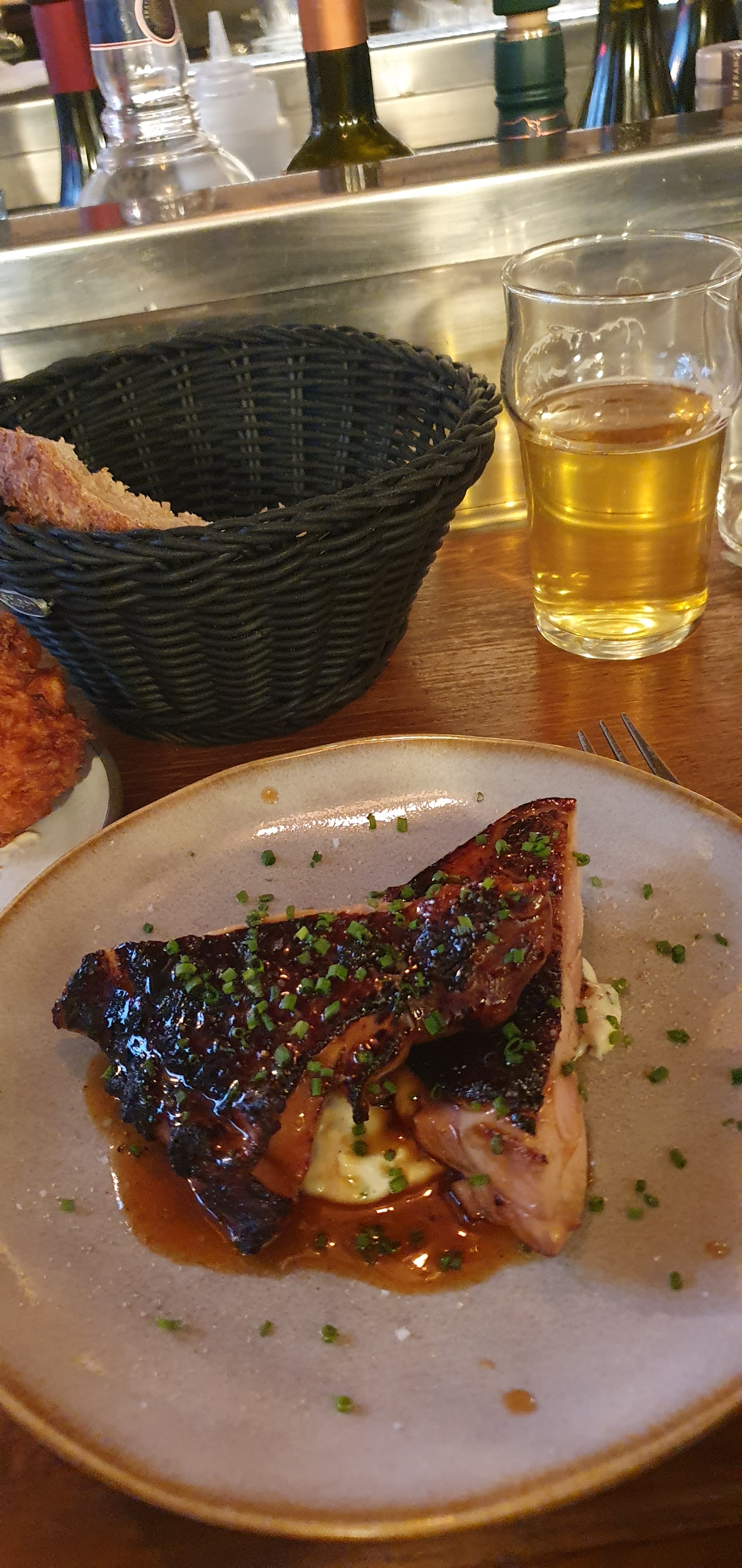 Très chaleureux et amical, un bon choix de vins et une cuisine avec des créations assez originales. J’ai aimé. Mais manger sur un comptoir donc alignés (qui plus est assez étroit) quand on est plus de 2 c’est pas très accommodant.