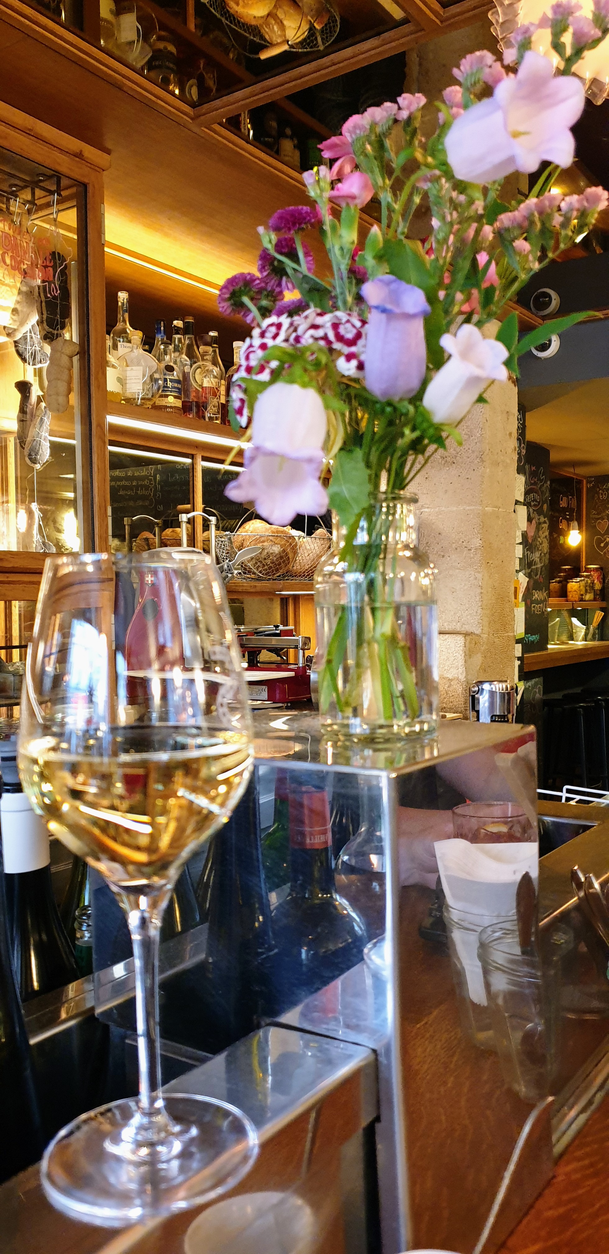Le cadre et l’atmosphère sont parfaits. Un endroit idéal pour profiter d’un bon verre de vin. Je le recommande absolument. S’asseoir au bar est vraiment agréable. The ambiance and atmosphere are perfect. It’s a great place to enjoy a glass of wine. I highly recommend it. Sitting at the bar is very enjoyable.
