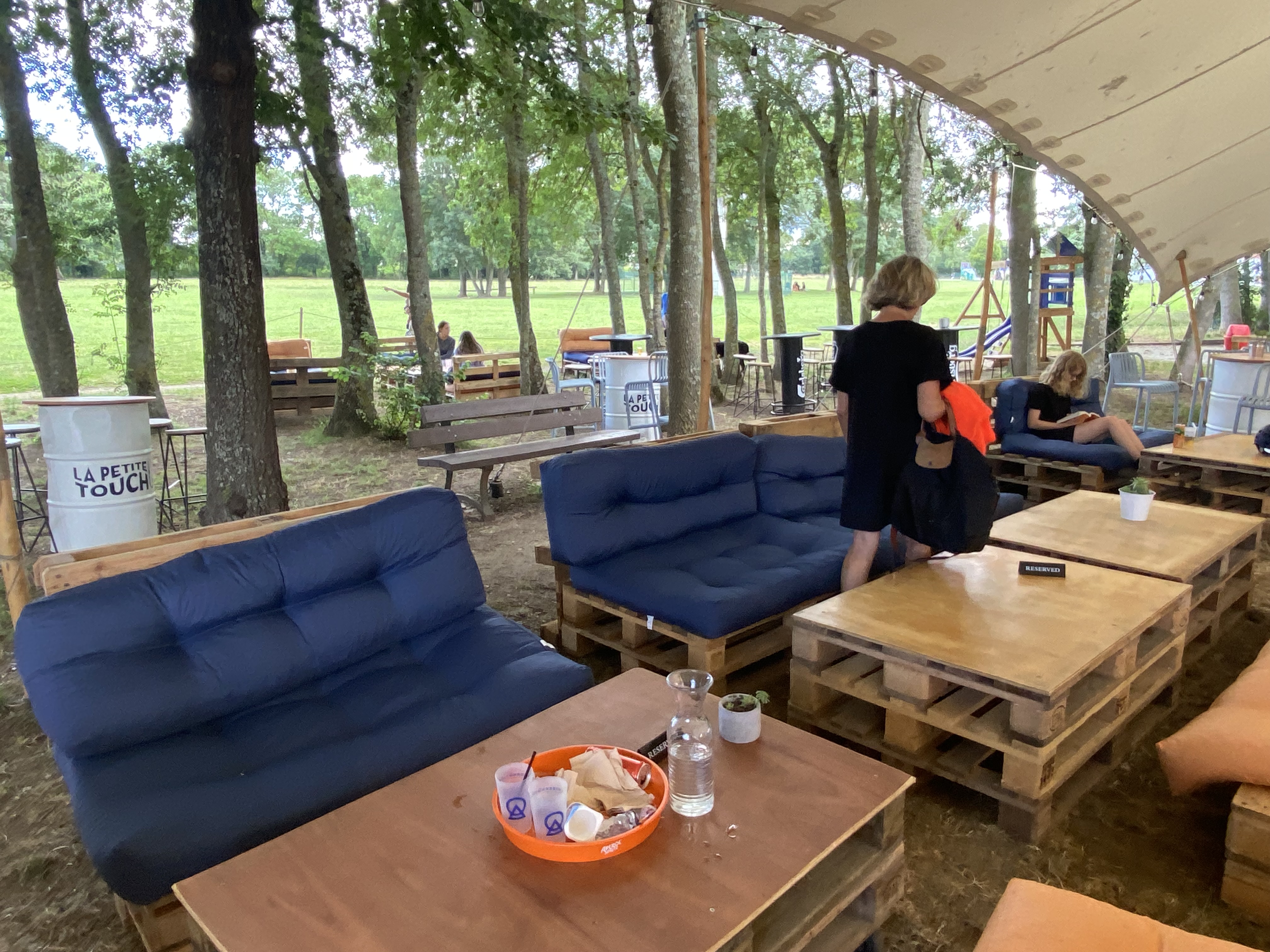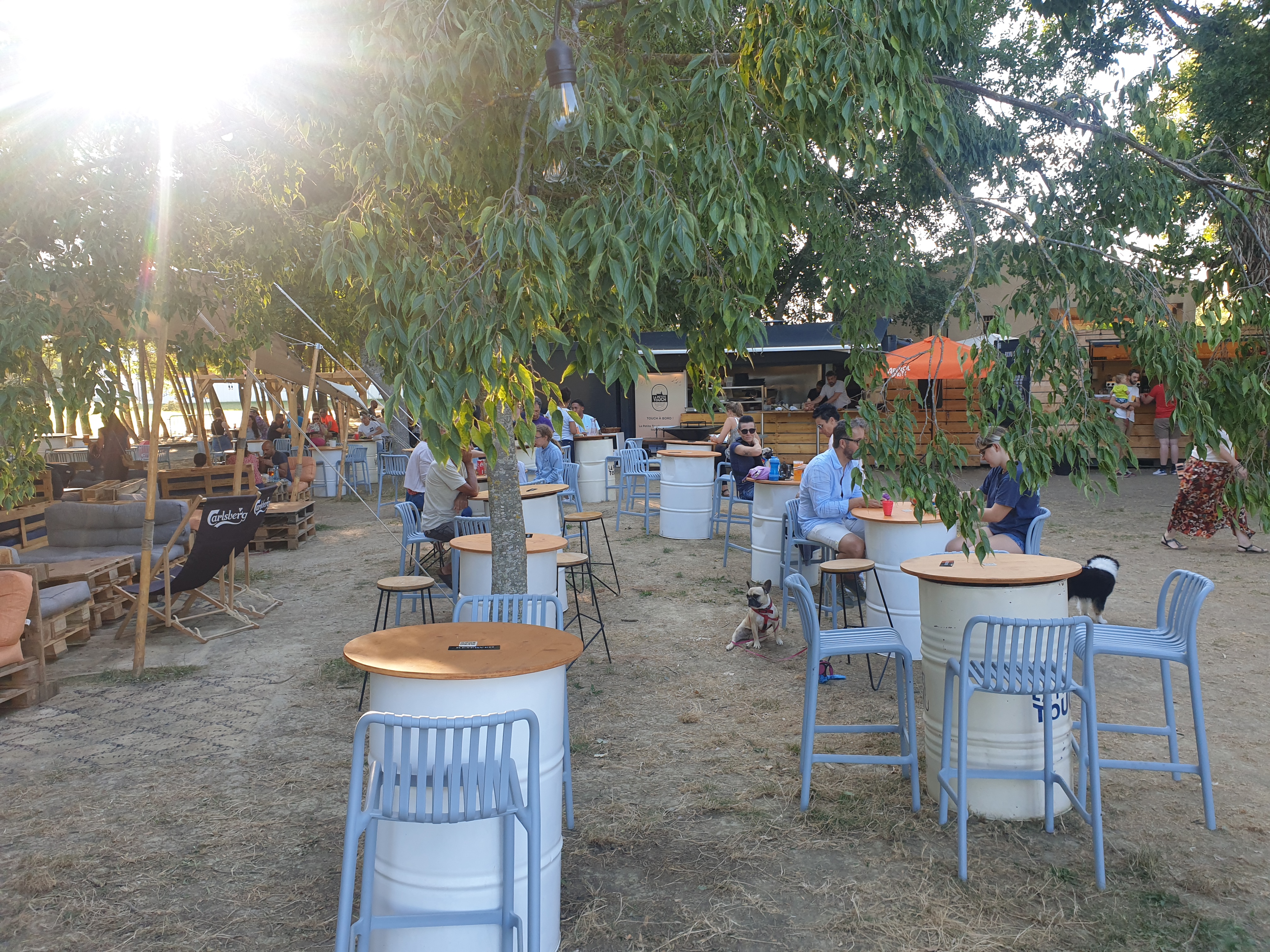 On adore se délasser, boire un pot, manger à La Petite Touch'. Ambiance bohème sous les chênes près du lac, gros salons de jardin moelleux en palettes recyclées, tabourets et tables hautes, écran géant les jours de matches de Coupe du monde de Rugby.
