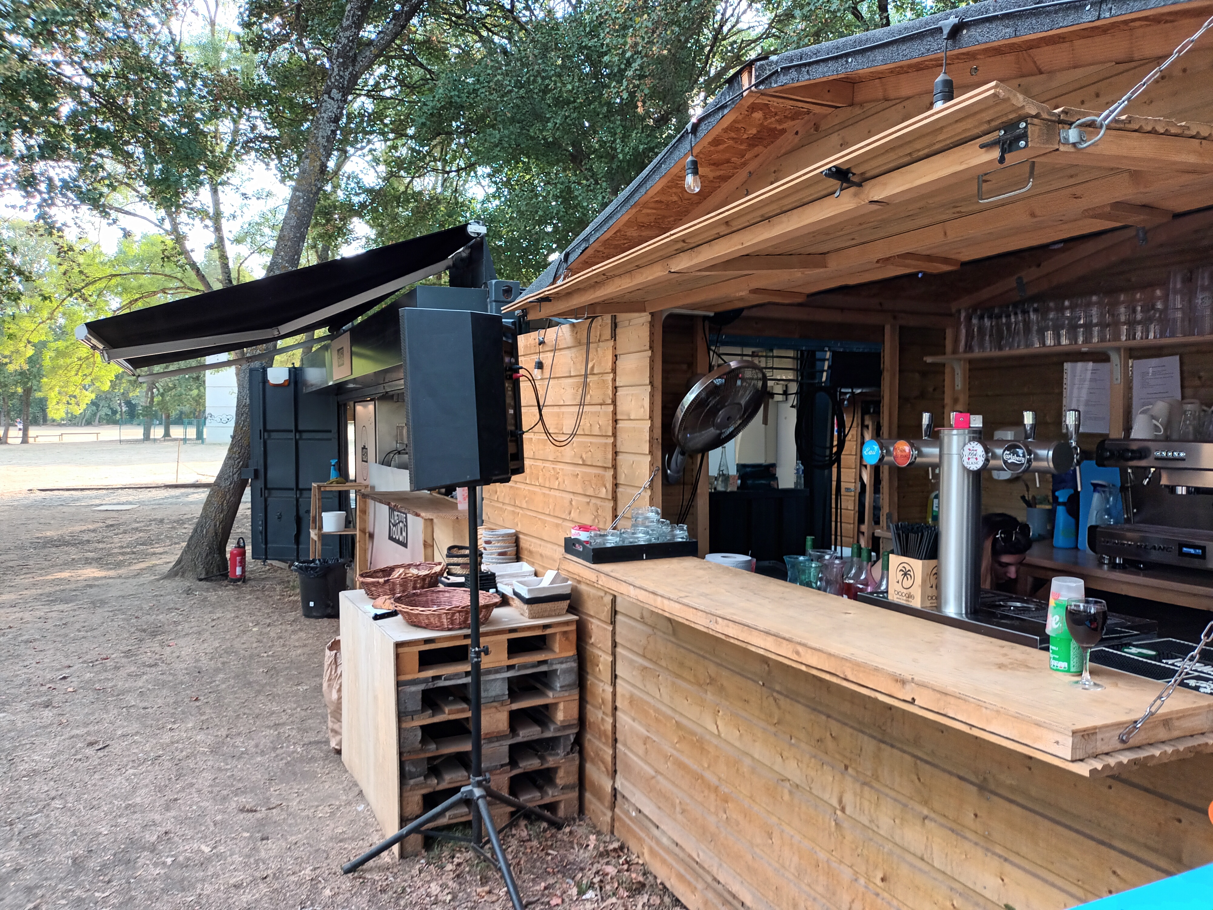 Top ! Bien agencé. Ambiance musicale sympa. Y a de l'air et par cette canicule c'est parfait. Bon concept. Commande puis bipper pour nous avertir que la commande est prête ! Génial. Personnel très sympathique ! A quand les petits concerts ? Prévoir lotion anti moustiques !