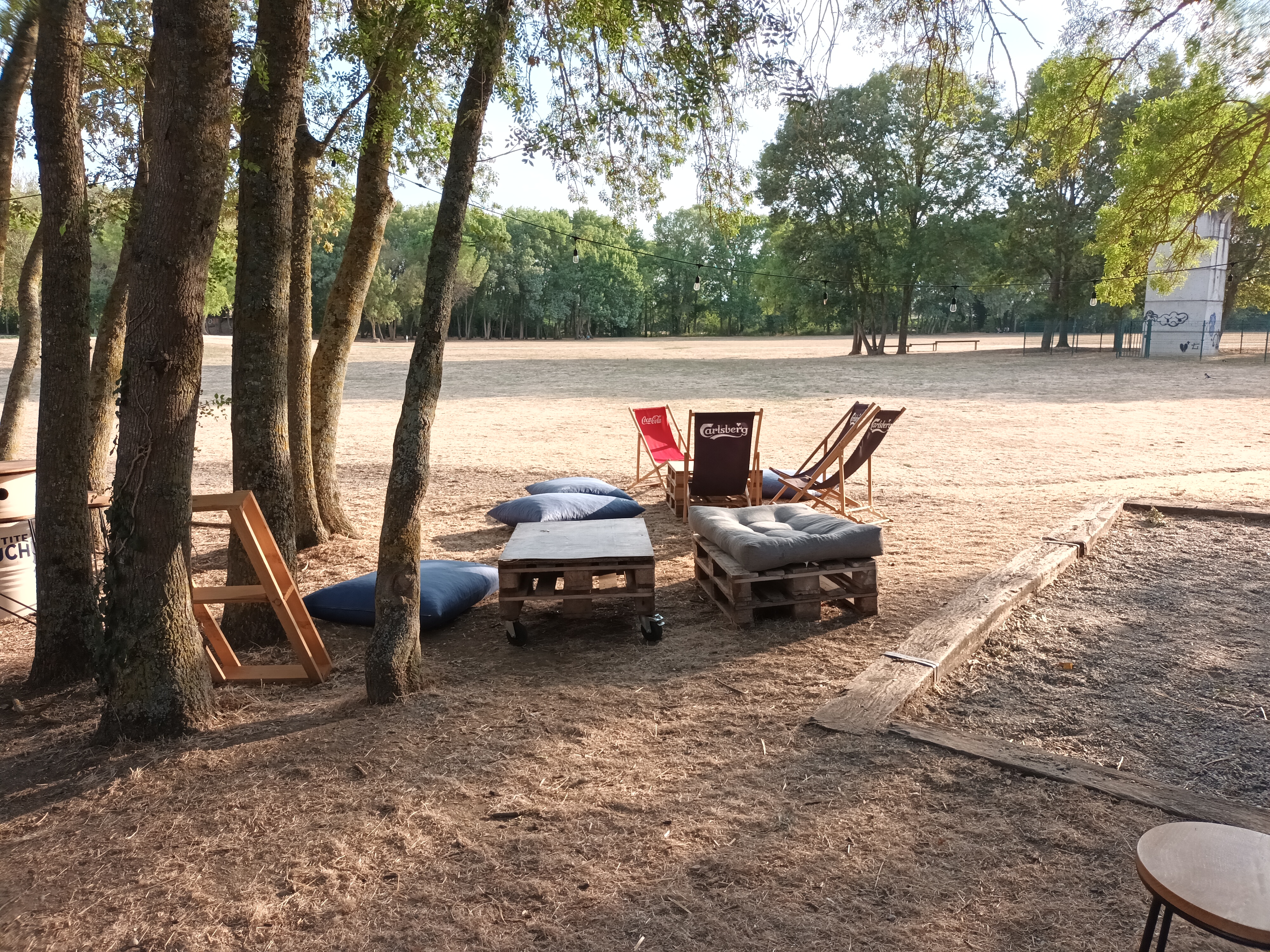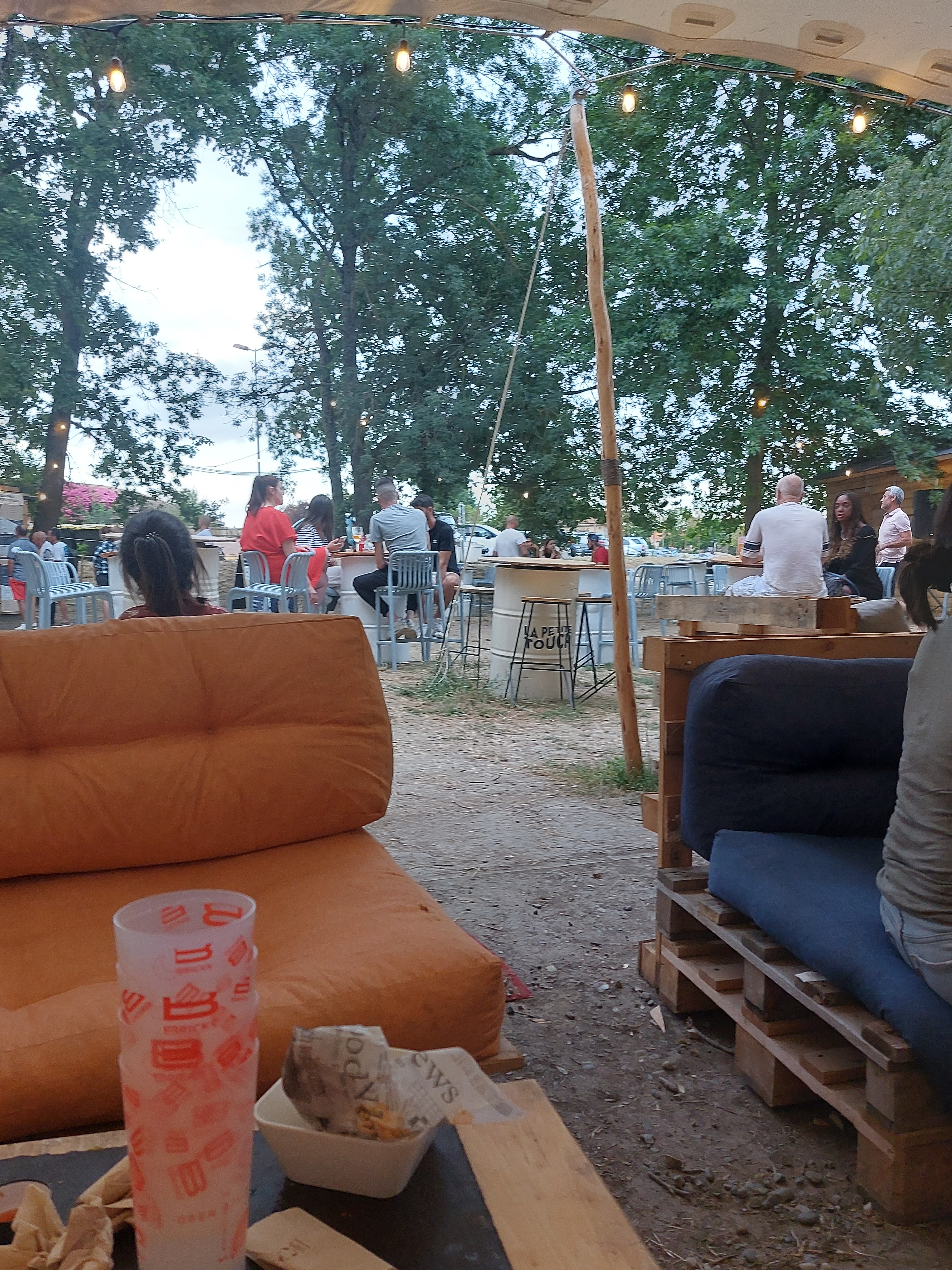 Nous sommes venus passer un moment en fin de journée, pour un petit apero. Endroit très agréable, ombragé, copieusement fréquenté. Le seul bémol pour nous c'est l'assise des banquettes faites en palettes avec de gros coussins, mais pas vraiment confortables, très profonds donc on reste assis au bord. Dommage. Sinon rien à dire.