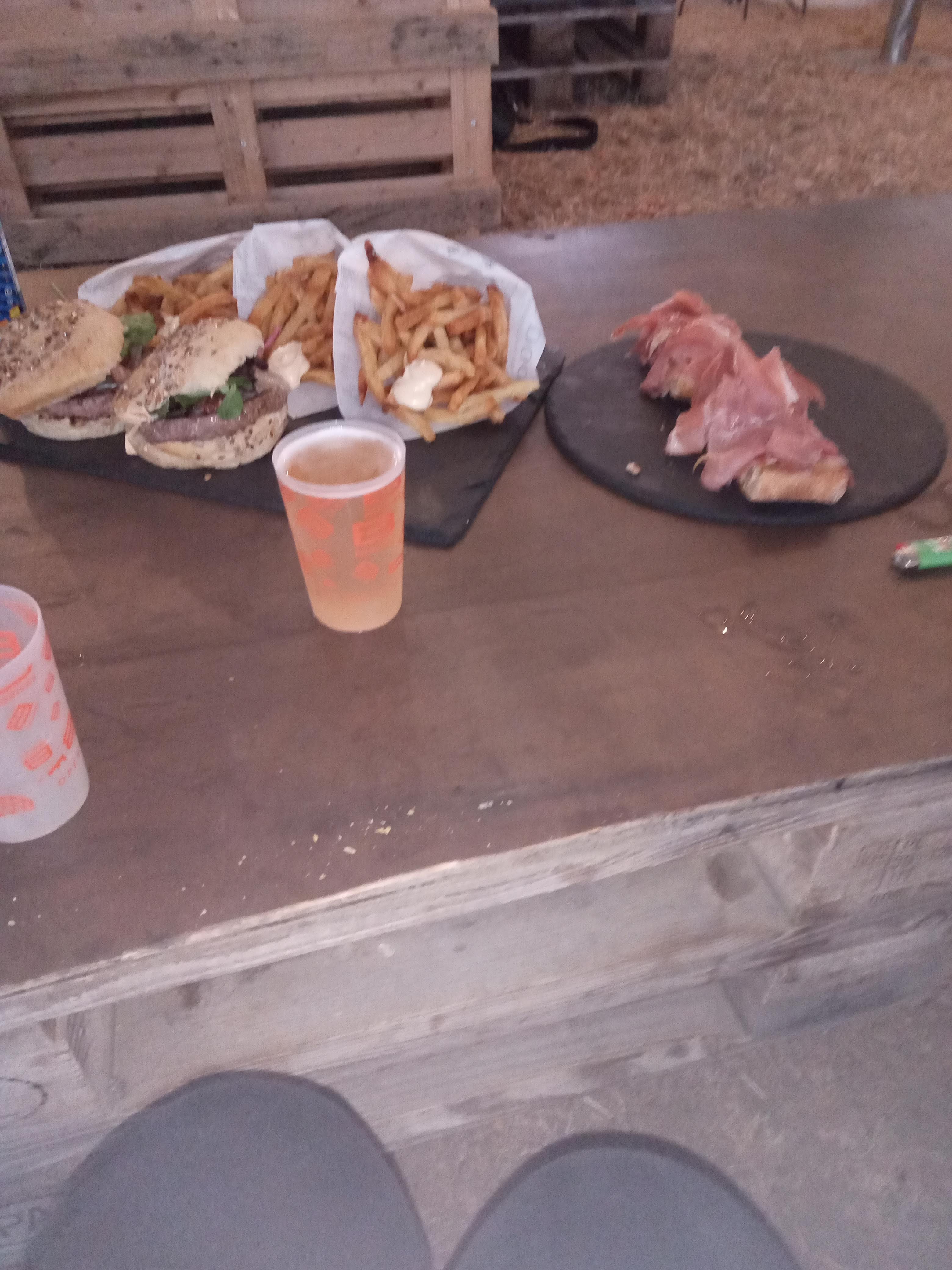 Le 1 du service c'est faire la queue a chaque fois que l'on veux un plat ou une boisson. Trop trop long Plus de pichet de sangria à 20h10, Plus de fromage à 21h30 Un manque manifeste d' l'organisation Pour éviter cela il faut être sûr du coup a la première commande. Désolé je ne reviendrai pas. Le hamburger très agréable