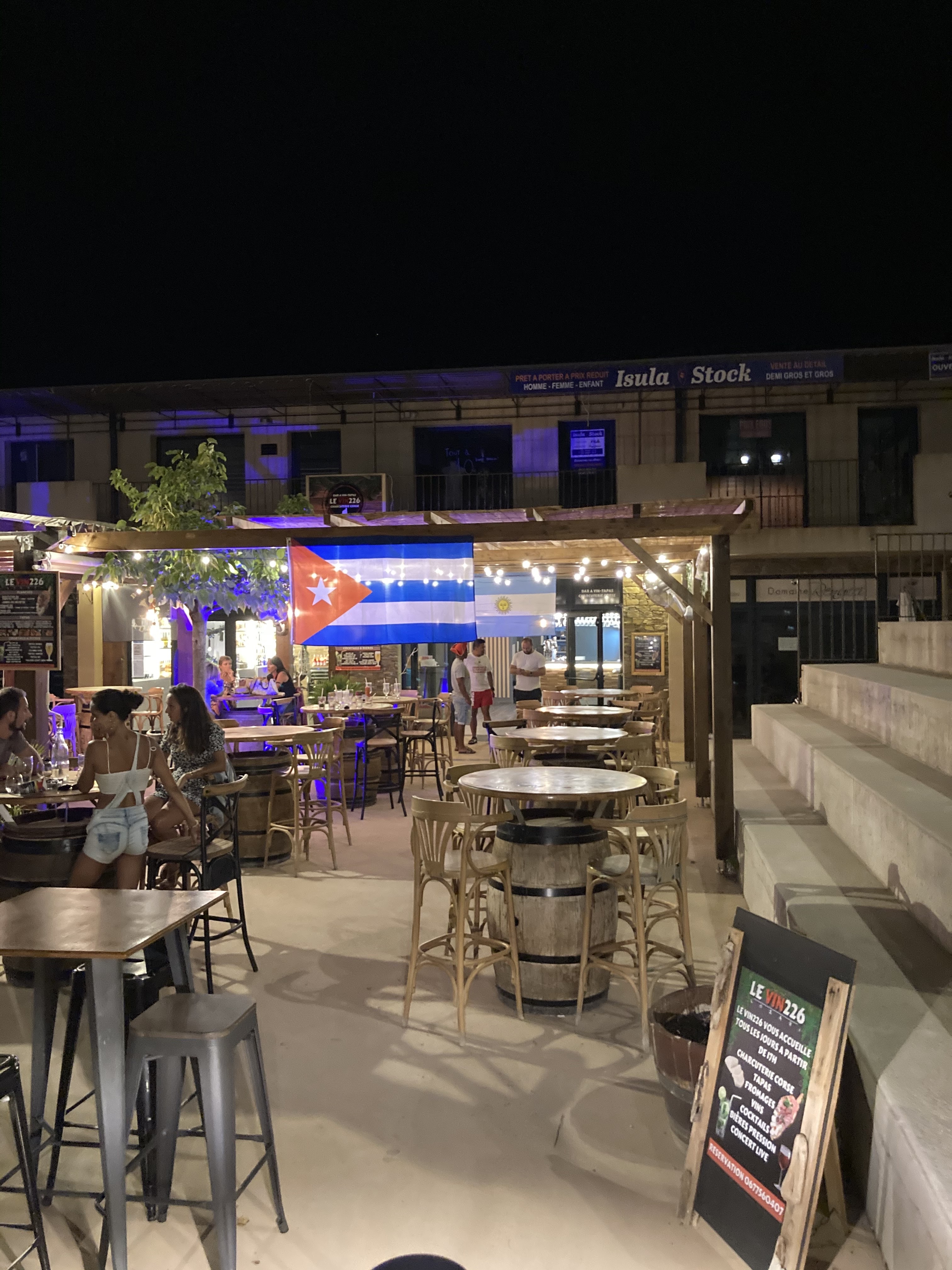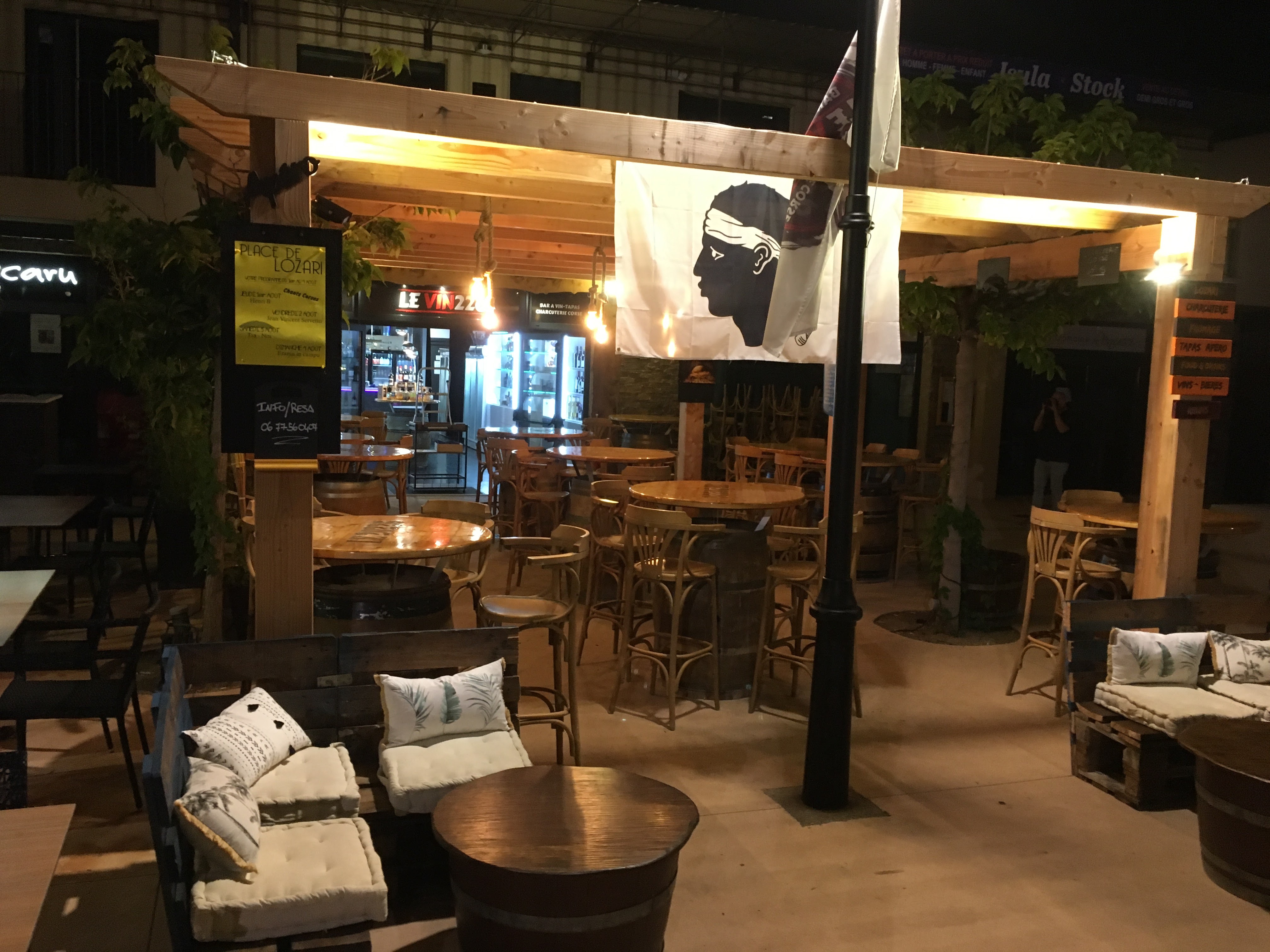 Bonne ambiance aux sons des chants corses. Les cocktails et les planches de qualité.