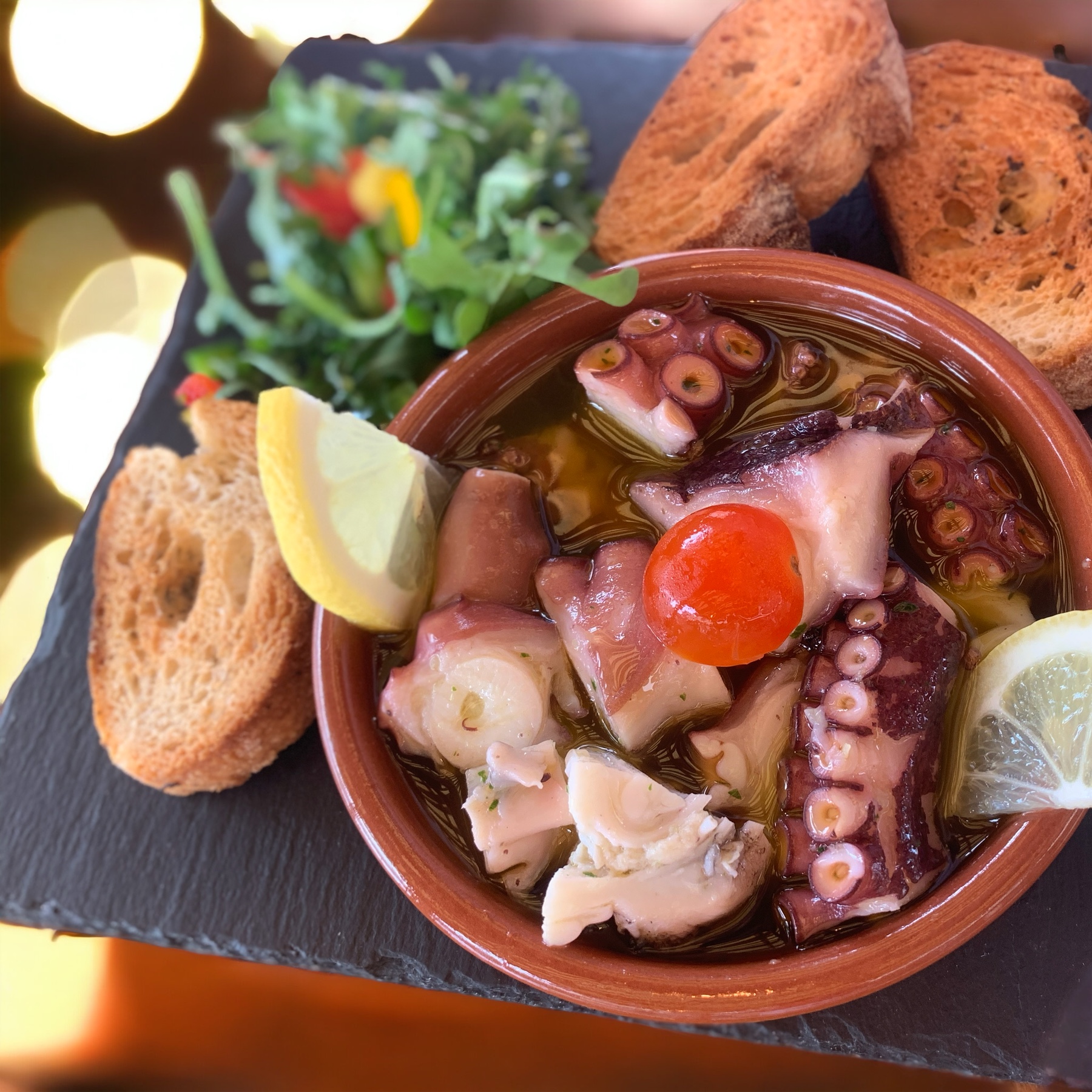 Vraiment exceptionnel! Nous y sommes allés un samedi soir, il y avait de la musique live accueillante sur la place. L'endroit sert de délicieuses tapas. Excellent poulet frit, boulettes de viande, fleurs de courgettes. J'y retournerais demain. Excellent service et cocktails aussi ! des prix équitables!